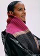 Lana Grossa, Qualität “Cool Merino Big“ ( 90% Schurwolle (Merino), 10 % Polyamid, LL 90 m /50 g): je 50 g Rosenholz (Fb. 217), Pink (Fb. 229), Dunkelgrau (Fb. 219), Burgund (Fb. 228) und Dunkelrot (Fb. 212).