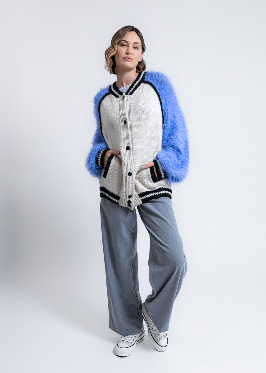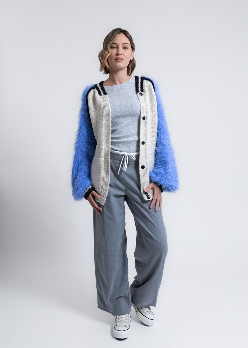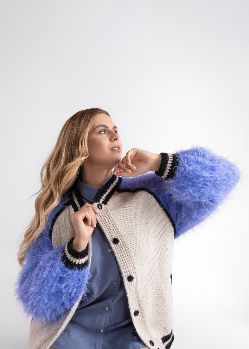 Die Jacke wird in einem Stück von oben nach unten gestrickt. Sie ist locker und großzügig geschnitten. Auf den Fotos tragen beide Models (Konfektionsgröße 34/36 bzw. 42/44) die Jacke in der Größe 36/38. Wer es weniger oversized mag, strickt die Jacke also am besten in der nächstkleineren Größe. Das Modell hat eine Gesamtlänge von 73 (75 - 77 - 79 - 81 - 83) cm und eine Brustmehrweite von 29 cm bei 80 cm Brustumfang (34 cm bei 88 cm Brustumfang - 28 cm bei 96 cm Brustumfang - 27 cm bei 104 cm Brustumfang - 24 cm bei 116 cm Brustumfang - 25 cm bei 128 cm Brustumfang).