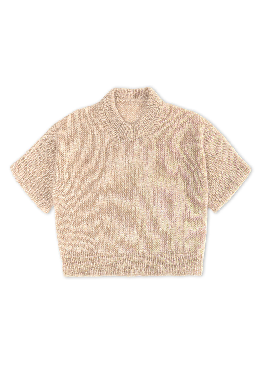 Für die Ärmel werden Maschen aus den Armlöchern aufgenommen und zur Runde geschlossen. Zunächst wird die Schulterkappe mit verkürzten Reihen gearbeitet, danach wird der Ärmel in Runden gestrickt. Unter dem Arm entsteht ein kleiner Spickel. Nach Erreichen der gewünschten Ärmellänge wird eine Bruchkante gearbeitet, gefolgt von einigen Runden glatt rechts. Nach dem Abketten wird die Kante an der Bruchkante nach innen umgeschlagen und innen angenäht.