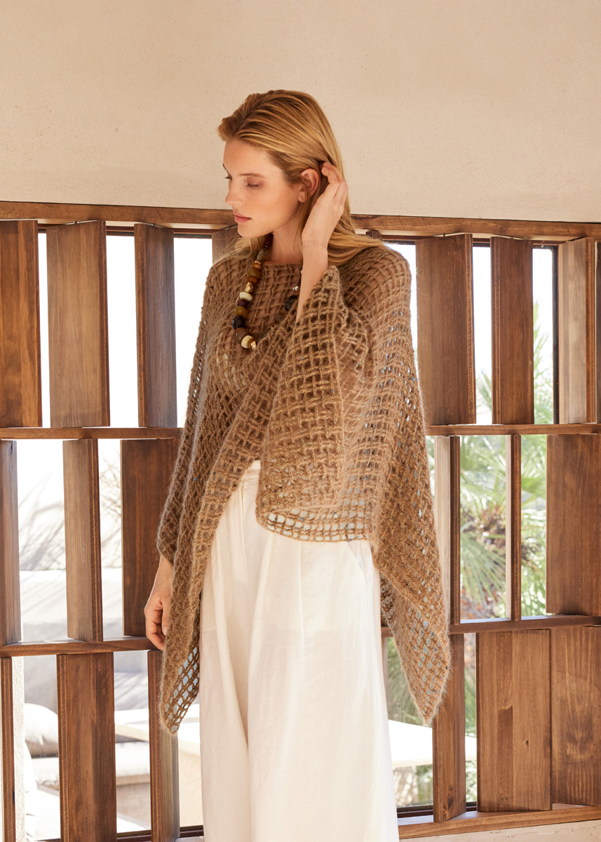 Federleicht soll er sein, ins Handgepäck passen und bei einer leichten Brise wärmen. Voilà ! Der zarte Poncho wird in einem Stück im attraktiven Flechtmuster gehäkelt. Und lässt sich nicht nur sexy über dem Bikini stylen, sondern sieht auch zu Jeans und Chinos extrem cool aus.