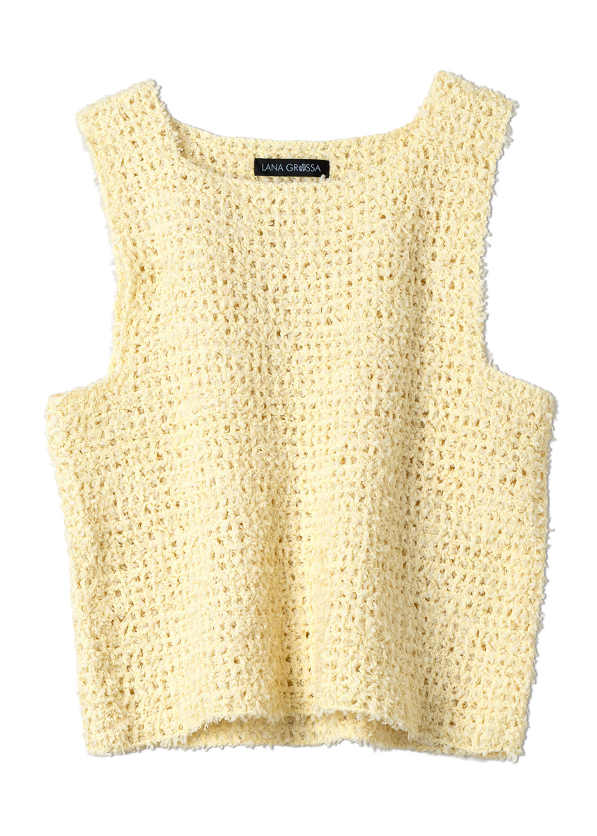 Gleiches Garn, gleiches Muster wie Modell 8 – und ebenso einfach zu häkeln ist das puristische Top, bei dem die Textur des Garns die Hauptrolle spielt. Eine gute Idee, die passende Jacke gleich mitzumachen!