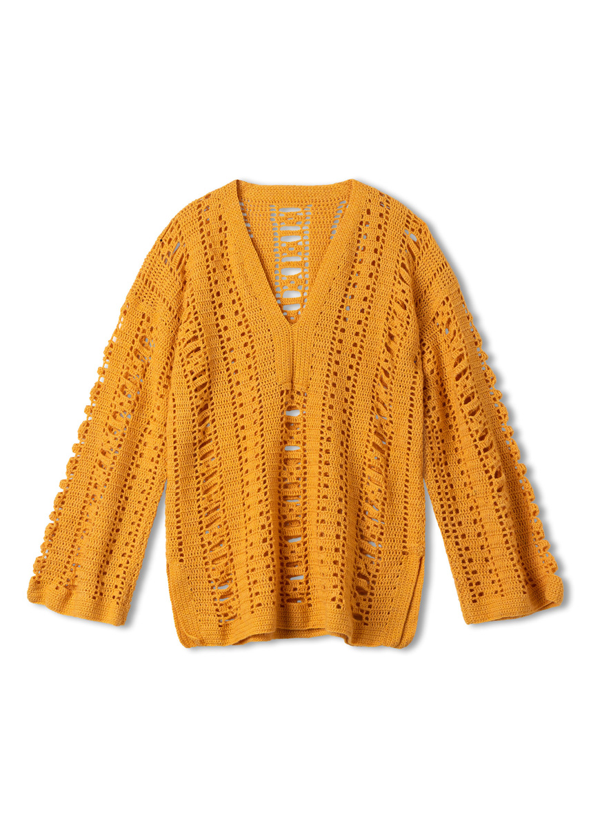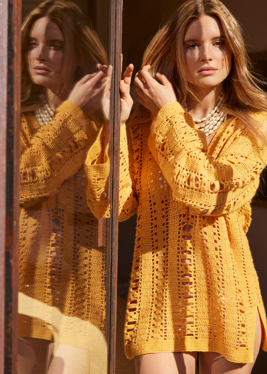 Die gehäkelte Tunika gehört in jedes Feriengepäck! Mit den weiten Ärmeln, lässigen Seitenschlitzen und ihrem romantischen Bordürenmuster im Boho-Style machen Sie an der Strandbar in Rantum eine ebenso gute Figur wie beim Sundowner im Café del Mar.