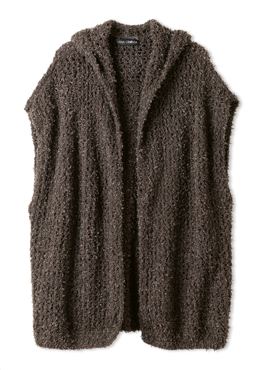 Lana Grossa-Qualität „Frizzante“ (54 % Baumwolle, 46 % Polyamid, LL = ca 105 m/50 g): ca 400 (450 - 500 - 550) g Mokka (Fb 4); Stricknadeln Nr 5.