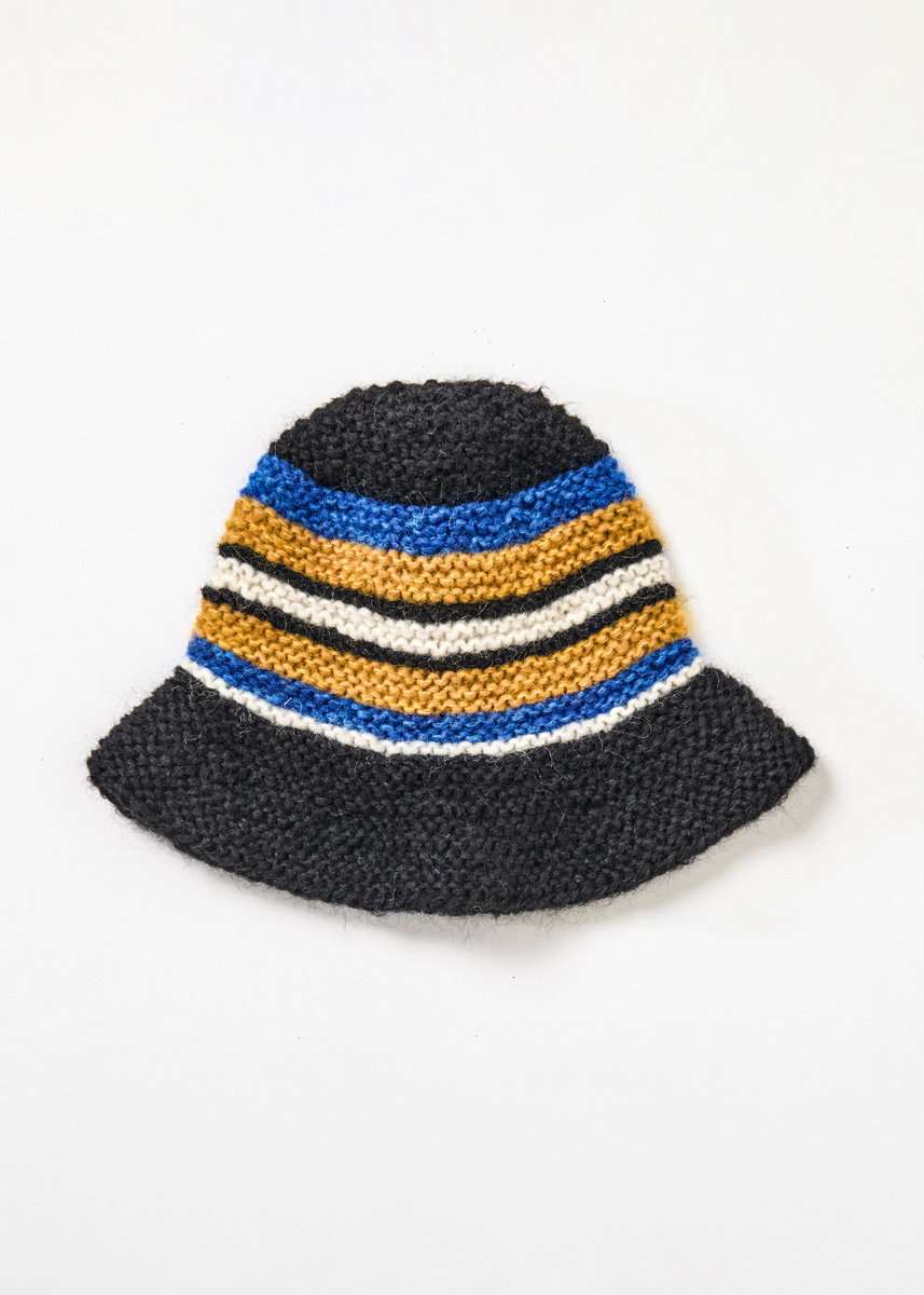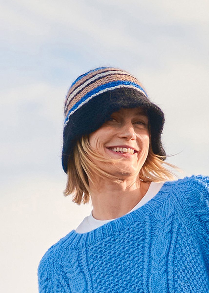 Garn von Lana Grossa, Qualität „Brigitte No. 2“ (47 % Alpaka (Baby), 45 % Baumwolle, 8 % Schurwolle (Merino), Lauflänge 140 m/50 g): Je 50 g in Rosenholz Nr. 43, Tintenblau Nr. 30, Schwarz Nr. 36 und Rohweiß Nr. 16. Qualität „Brigitte No. 3“ (57 % Schurwolle, 20 % Mohair, 23 % Polyamid, Lauflänge 100 m/25 g): Je 25 g in Curry Nr. 22, Blau Nr. 13, Schwarz Nr. 10 und Hellbeige Nr. 18. 1 kurze Rundstricknadel und/oder 1 Nadelspiel 5 (wenn Sie locker stricken) oder 6 (wenn Sie fest stricken) – wichtig ist, dass Sie auf die Angaben in der Maschenprobe kommen.