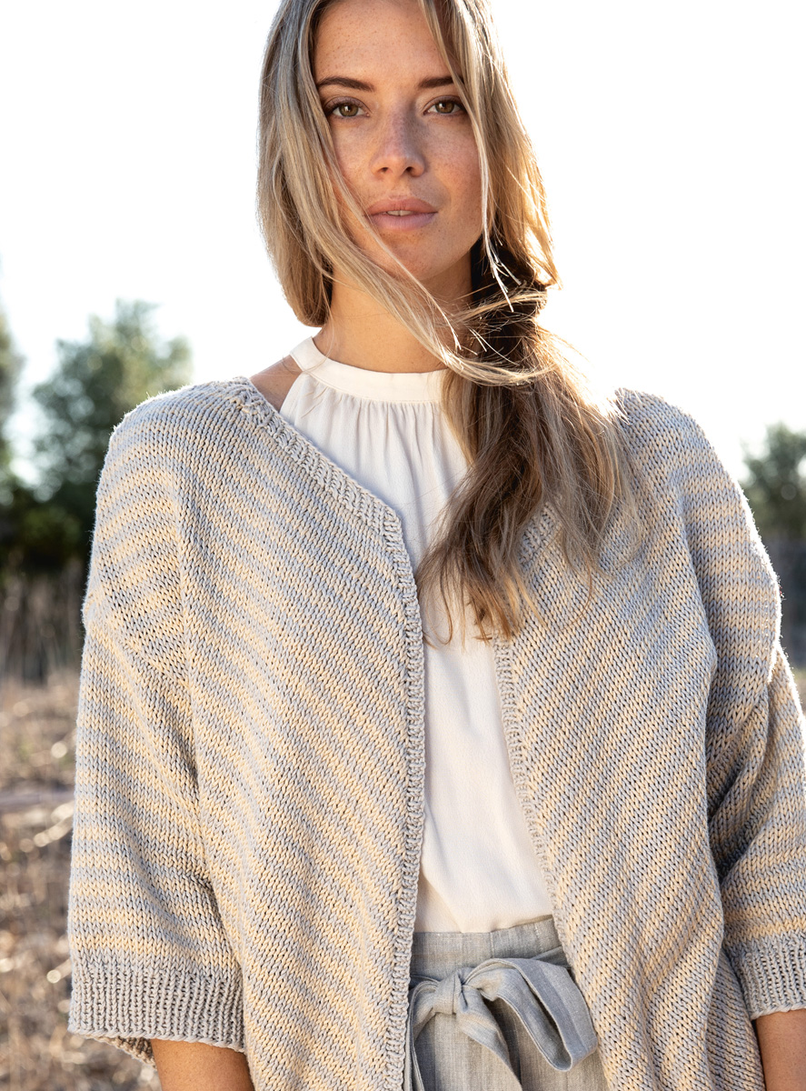 Schön schräg: Das Ringelmuster für den verschlusslosen Cardigan entsteht durch Ab- und Zunahmen.
