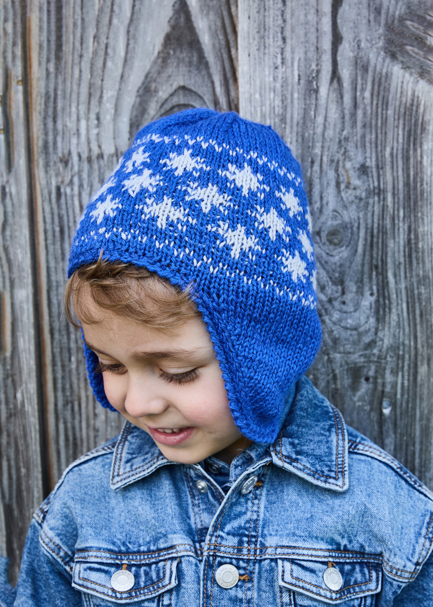 Lana Grossa-Qualität „Landlust- Alpaka-Merino 160“ (50% Schurwolle (Merino), 50% Alpaka (Baby), LL ca. 160 m/50 g), je 50 g in Tintenblau (Fb 448) und Silbergrau (Fb 439); 1 Nadelspiel Nr. 4,5, 1 Häkelnadel Nr. 4.
