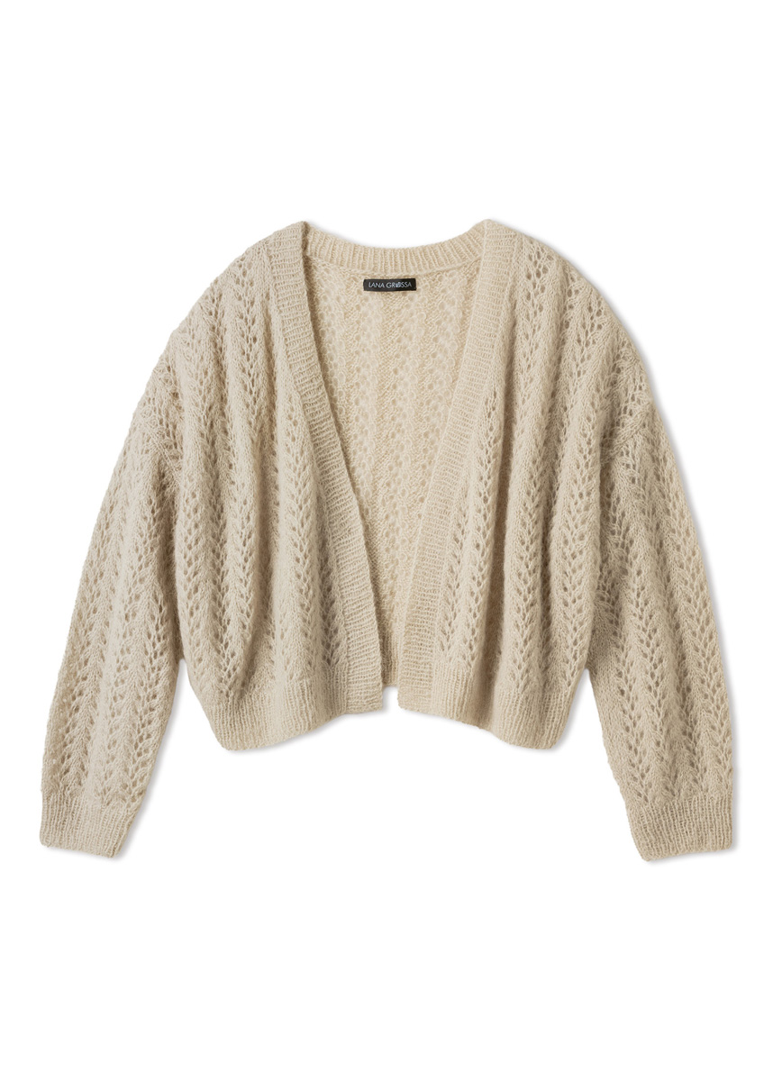 Der Lochmuster-Cardigan wird stets mit doppeltem Faden gestrickt.