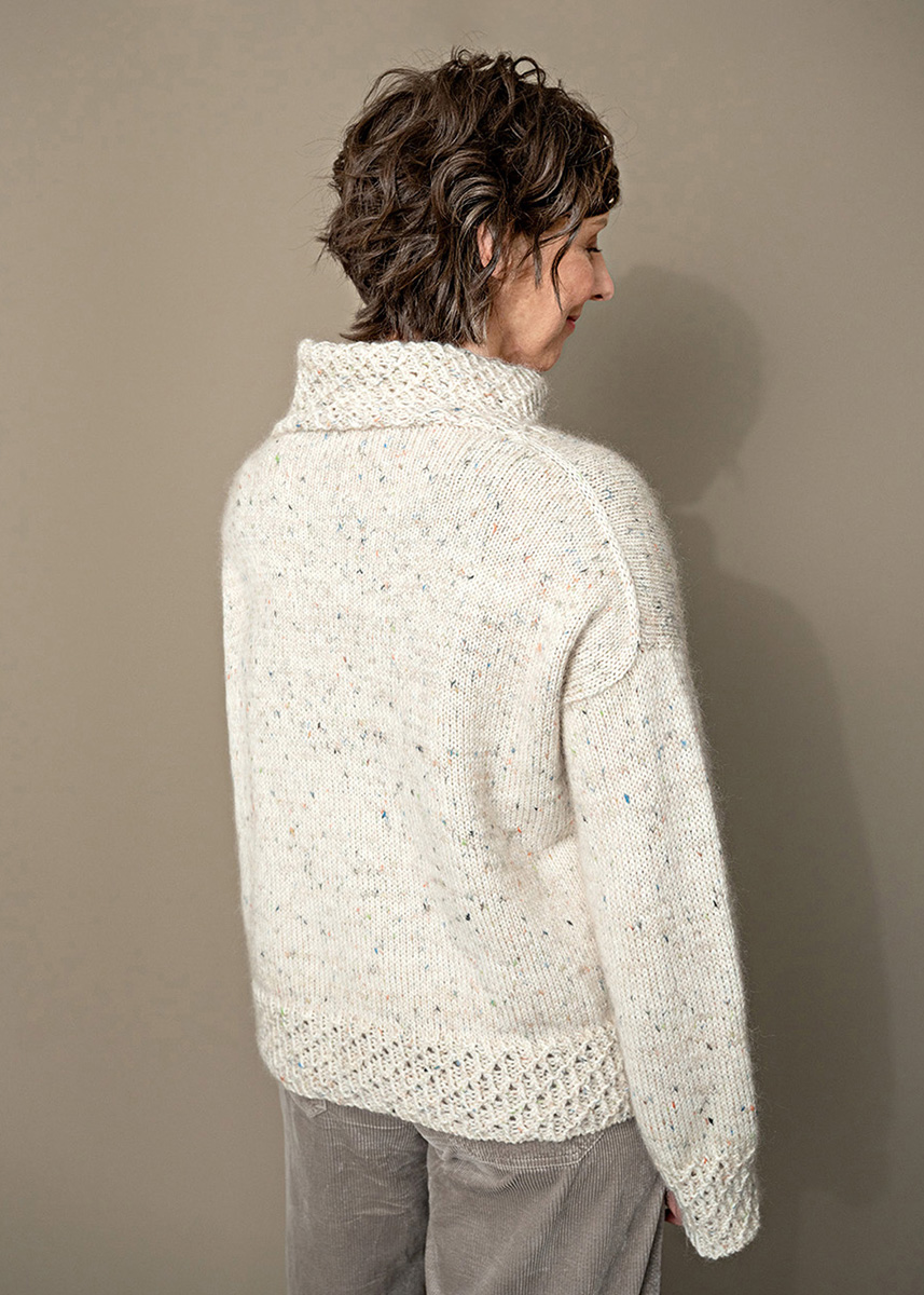 Eine klare Winternacht, der Himmel voller Sterne, das leise Summen der Reifen auf einer stillen Straße. Eingehüllt in den Midnight-Drive-Pulli – weich, oversized und so gemütlich wie die liebste Decke. Gestrickt aus zwei luxuriösen Garnen von Lana Grossa – Natural Superkid Tweed und Merino Uno – vereint dieser Pullover fluffiges Mohair mit tweedigen Sprenkeln. Das ergibt eine wunderschön melierte Struktur, die das Licht einfängt wie Mondstrahlen im Schnee. Der hohe Rollkragen und die Bündchen zeigen ein zartes Strukturmuster, das dem ganzen Kuschelvolumen einen Hauch von Eleganz verleiht. Mit seiner entspannten Passform und wohligen Wärme ist Midnight Drive wie gemacht für langsame Morgen, lange Spaziergänge – und natürlich für diese magischen Mitternachtsfahrten, wenn die Welt so friedlich und still wirkt. Einfach überziehen – bereit für alles, was die Nacht dir bringt.
