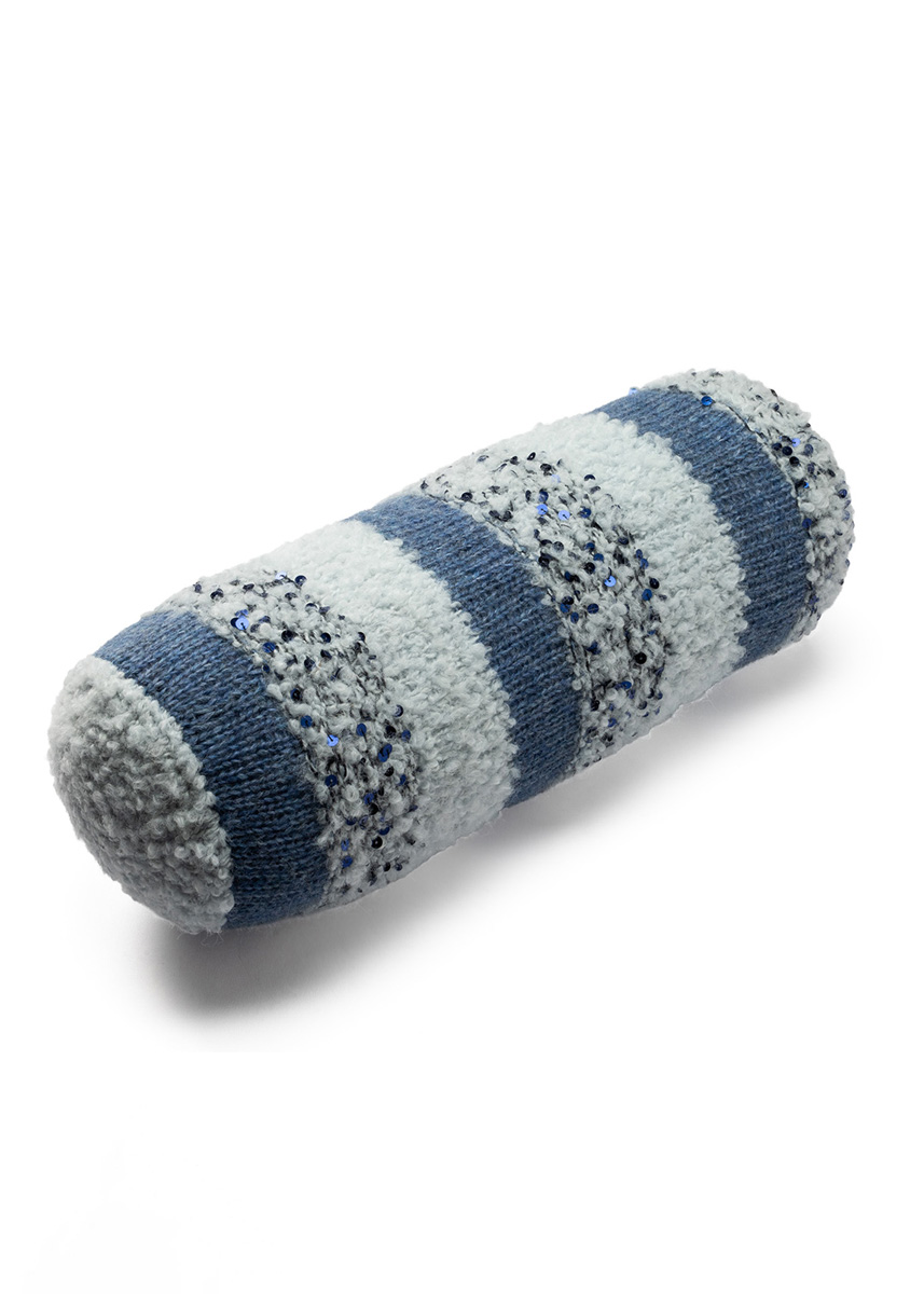 LL = ca. 260 m/100 g): ca. 100 g Nachtblau (Fb. 19); 1 Wollhäkelnadel Nr. 4, Stricknadeln Nr. 5; 1 Nackenrolle, 40 x 15 cm ø.