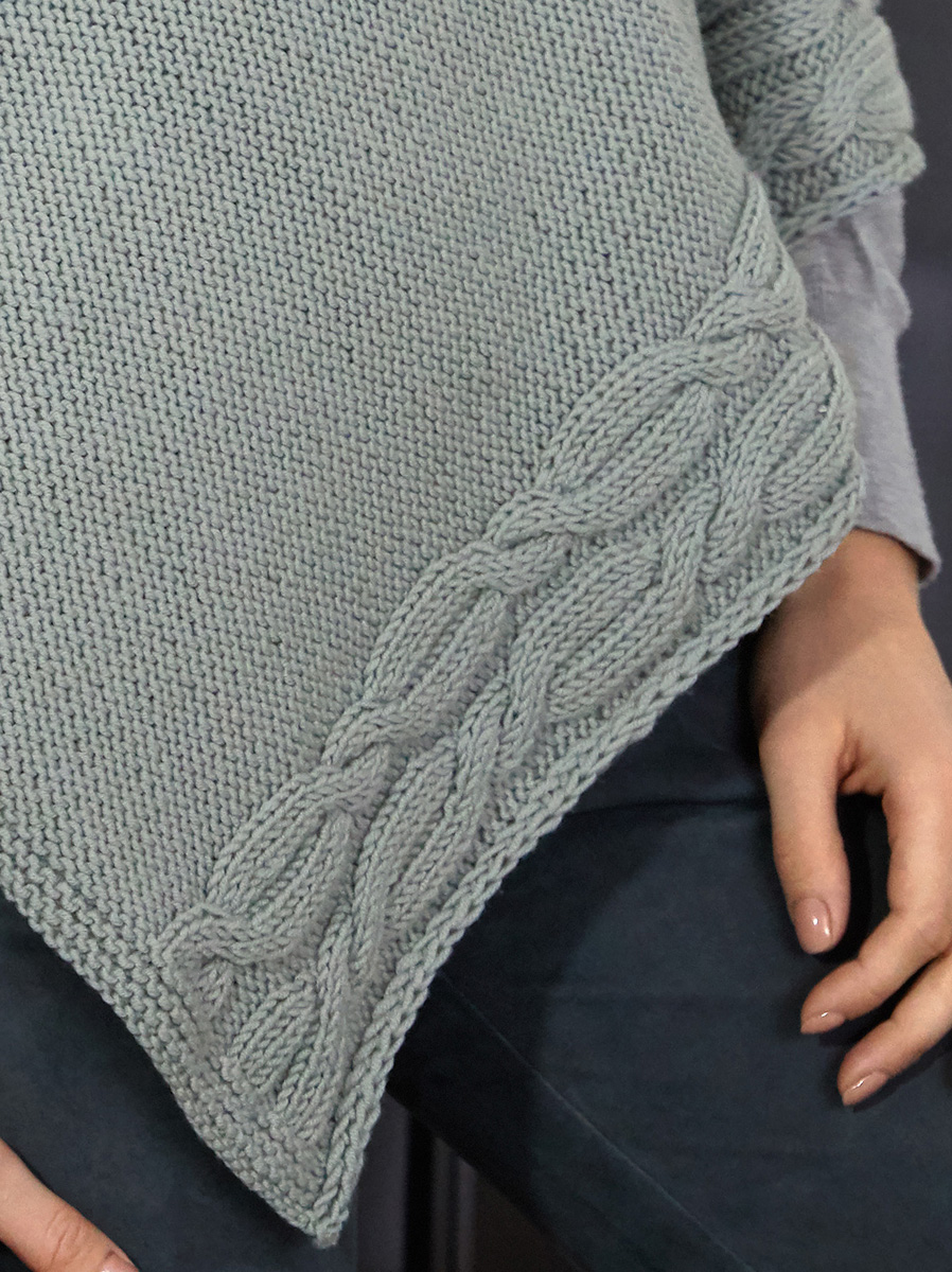 Lana Grossa-Qualität „Cool Wool Big“ (100% Schurwolle, LL = ca. 120 m/50 g); 400 g Mittelgrau (Fb 928); Stricknadeln Nr. 7, eine Hilfsnadel