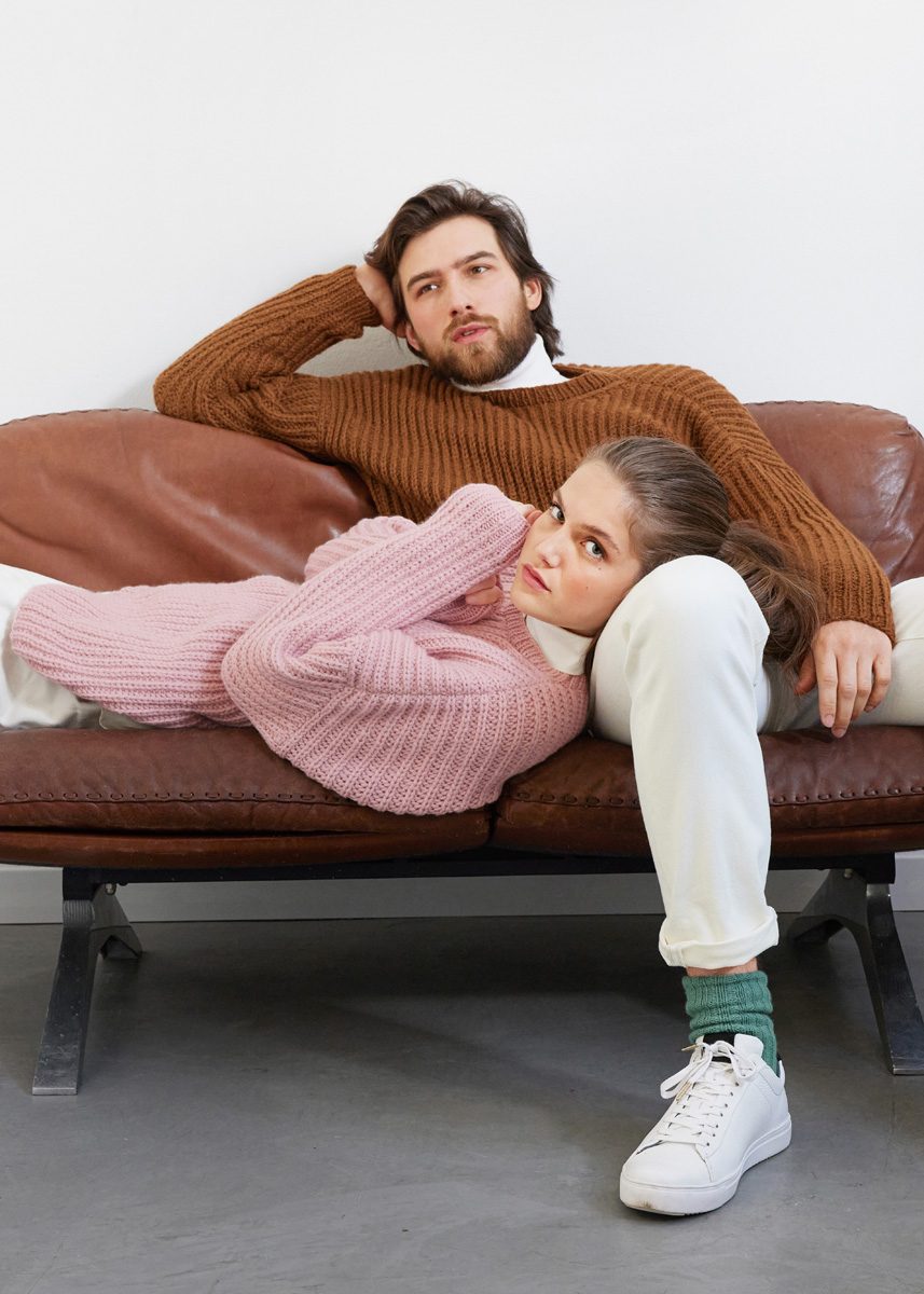 Mal Zartrosa, mal Braun – unterschiedliche Farbtöne inszenieren den zeitlosen Halbpatent-Pulli immer wieder neu. Seine Einheitsgröße wirkt bei Männern leger und bei Frauen schön oversized.