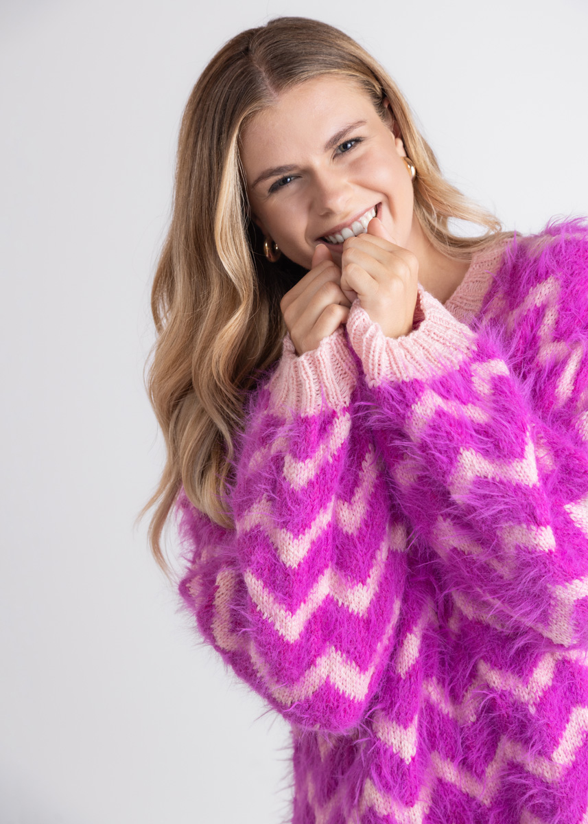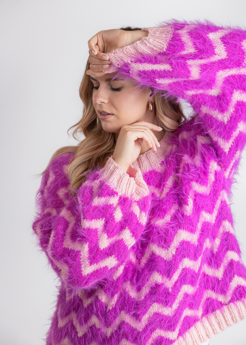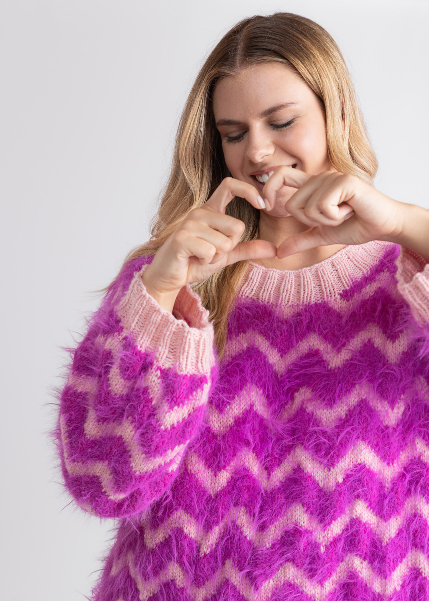 Der Pullover wird bis zu den Armausschnitten in einem Stück in Runden gestrickt. Die Ärmel werden ebenfalls von unten nach oben in Runden gestrickt. Das Modell hat eine Gesamtlänge von 53 (53 - 53 - 60 - 60 - 60) cm und eine Brustmehrweite von 28 cm bei 80 cm Brustumfang (20 cm bei 88 cm Brustumfang - 28 cm bei 96 cm Brustumfang - 20 cm bei 104 cm Brustumfang - 24 cm bei 116 cm Brustumfang - 12 cm bei 128 cm Brustumfang).