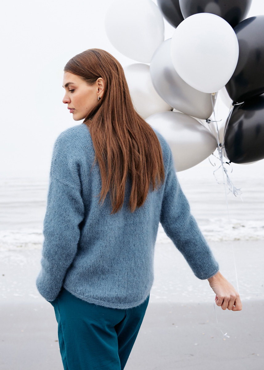 Der Pullover wird stets mit doppeltem Faden gestrickt.