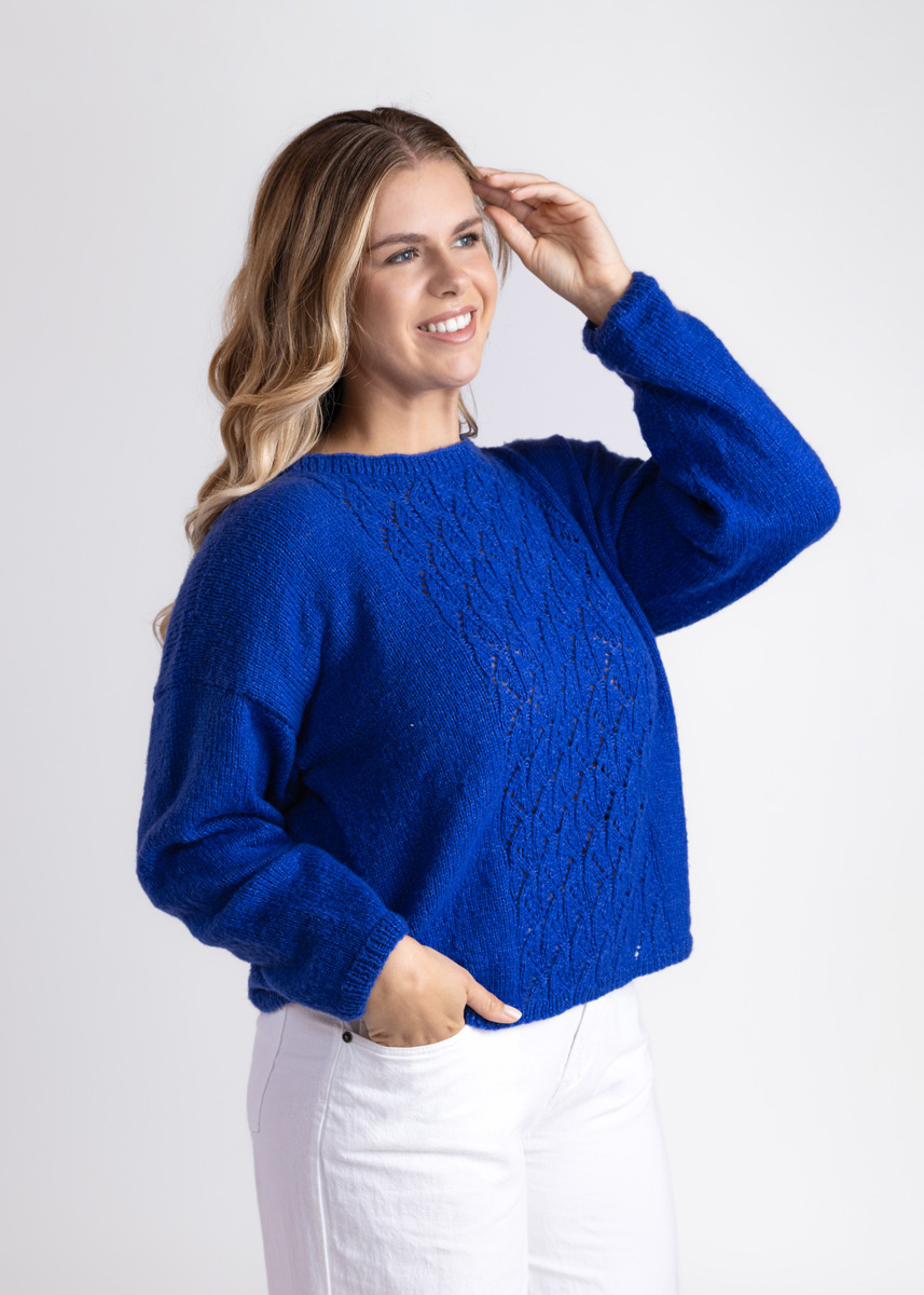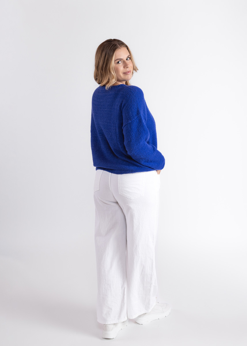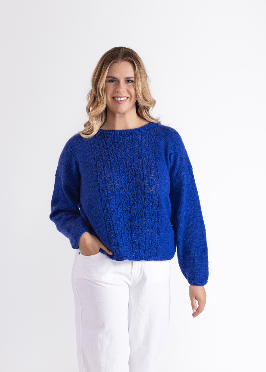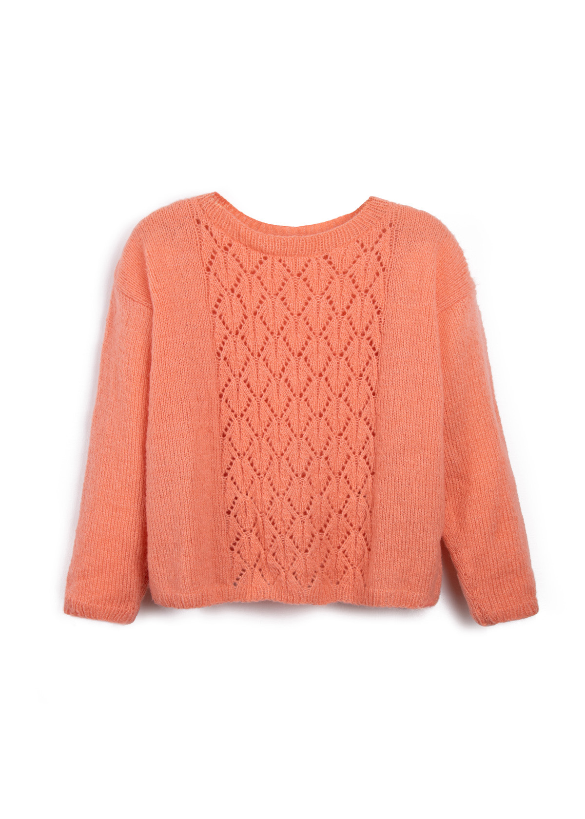 Der Pullover wird durchgehend mit doppeltem Faden gestrickt. Er hat eine Gesamtlänge von 53 (55 - 57 - 59 - 61 - 63) cm und eine Brustmehrweite von 22 cm bei 80 cm Brustumfang (18 cm bei 88 cm Brustumfang - 14 cm bei 96 cm Brustumfang - 14 cm bei 104 cm Brustumfang - 10 cm bei 116 cm Brustumfang - 10 cm bei 128 cm Brustumfang).
