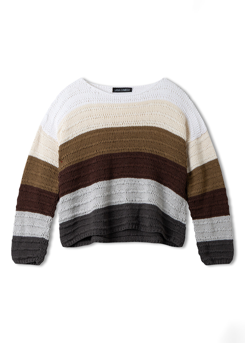 Die matte, papierfeine Optik des neuen Bändchengarns kommt bei diesem ausdrucksvollen Pullover besonders gut zur Geltung – und, en passant, dürfen wir sechs weitere Töne der Farbpalette präsentieren. Der gerade Schnitt macht auch Einsteigern Freude.