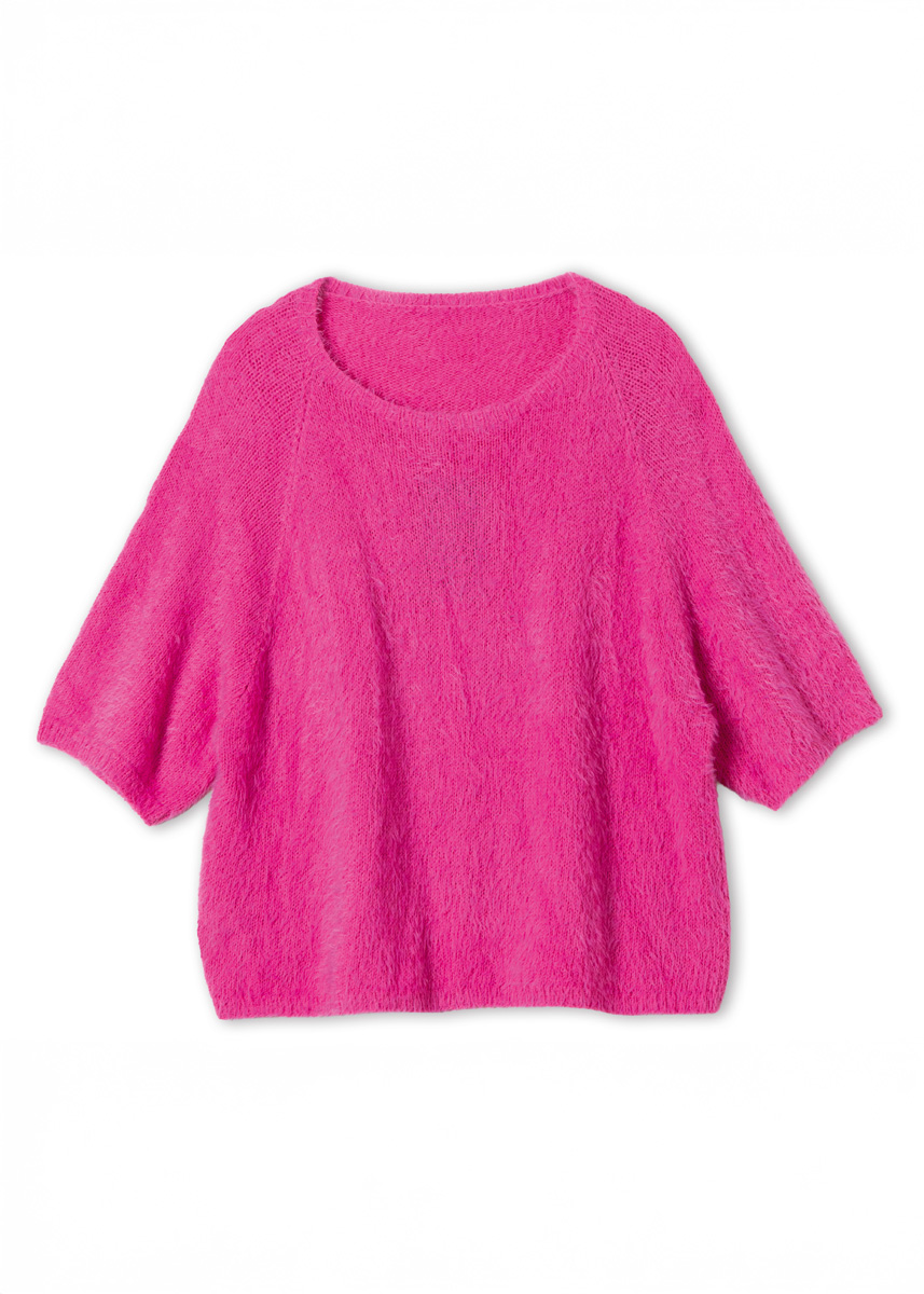 Lana Grossa-Qualität „Per Fortuna“ (74 % Baumwolle (Bio), 26 % Polyamid, LL = ca 190 m/50 g): ca 300 (300 - 350 - 350) g Pink (Fb 3); Stricknadeln Nr 3 und 3,5; 1 kurze Rundstricknadel Nr 3.