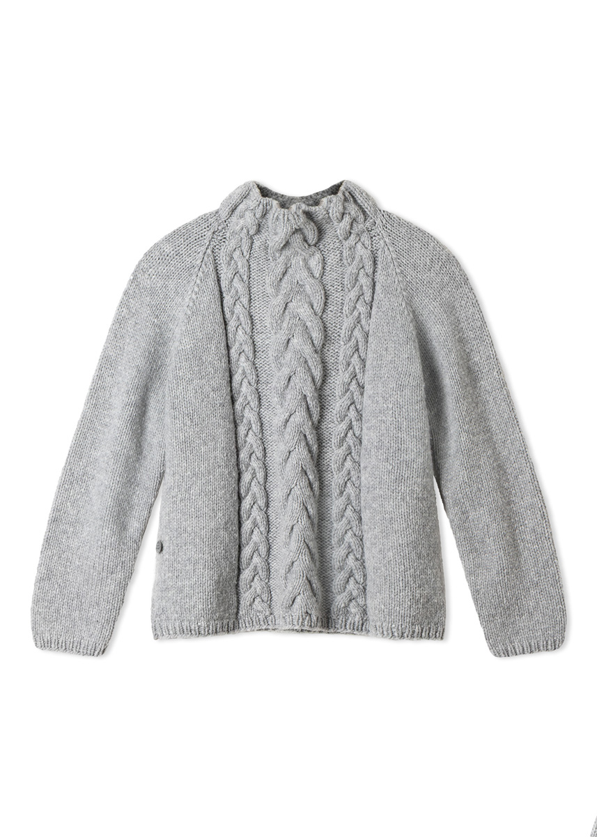 Lana Grossa-Qualität „Cool Merino Big” (90 % Schurwolle (Merino), 10 % Polyamid, LL = ca. 90 m/50 g): ca. 550 (600 – 650) g Hellgrau (Fb. 218); Stricknadeln Nr. 5 und 7, 1 Rundstricknadel Nr. 5, 50 cm lang, 1 Wollnadel von Lana Grossa.