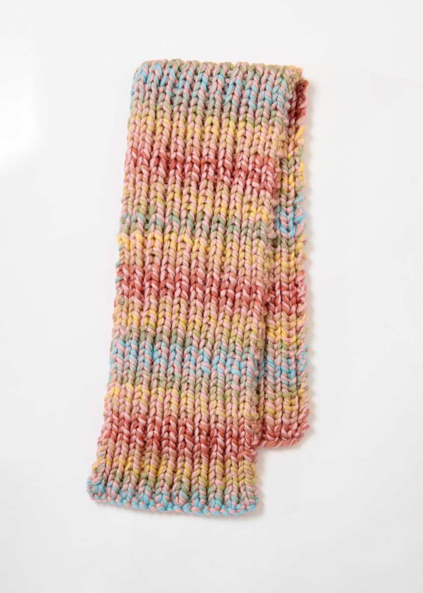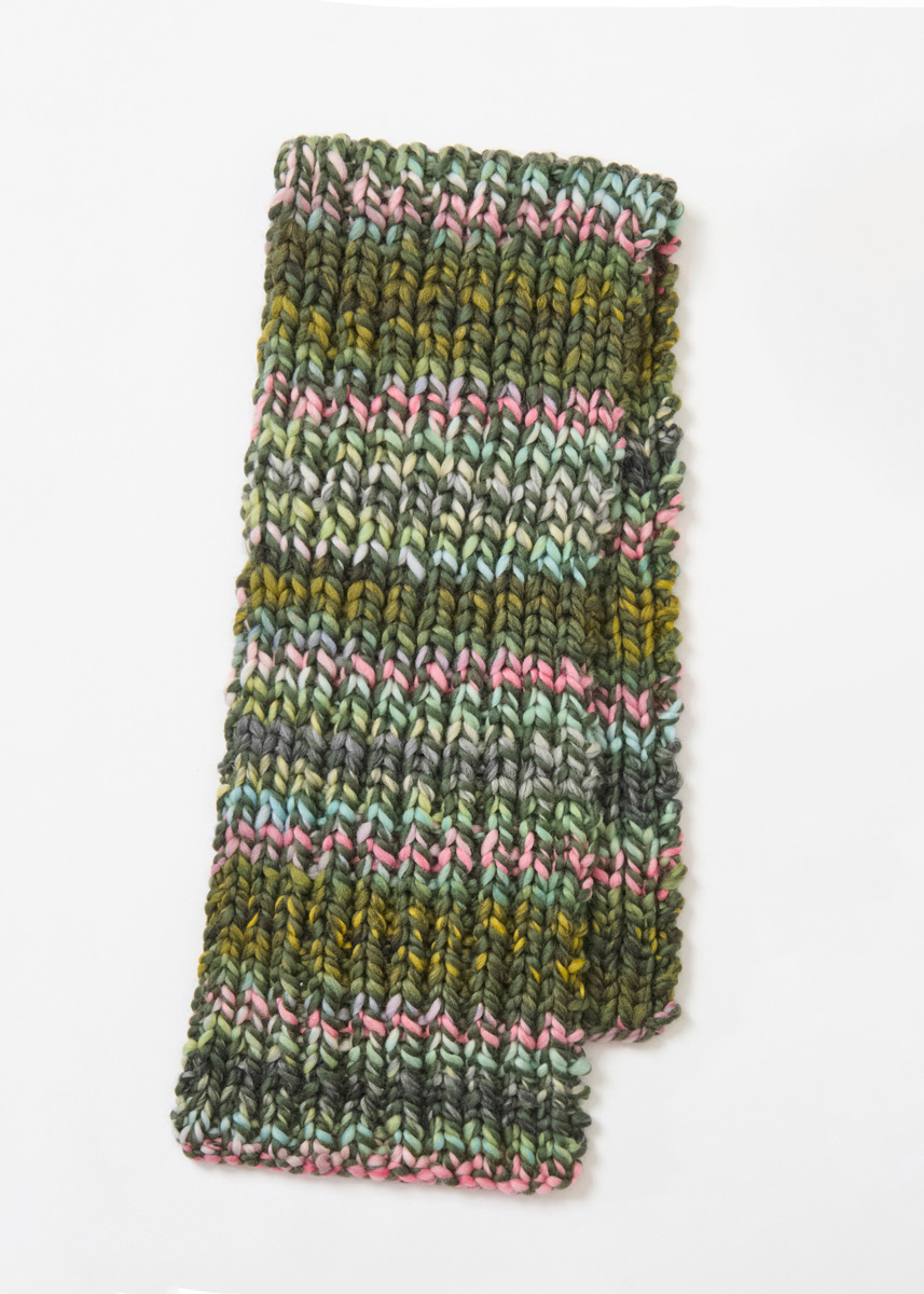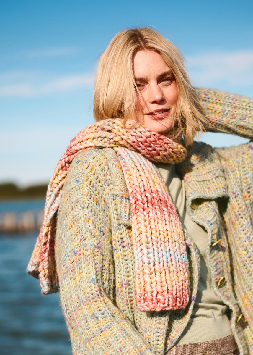 Der melierte Rippenschal in verkürzter Länge kommt noch in einer weiteren Farbstellung.
