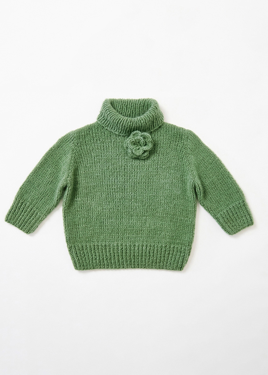 Grüne Welle für die Sinne. Der Rolli mit Häkelblüte aus flauschigem Mohairgarn ist ein tolles Einsteigerprojekt.