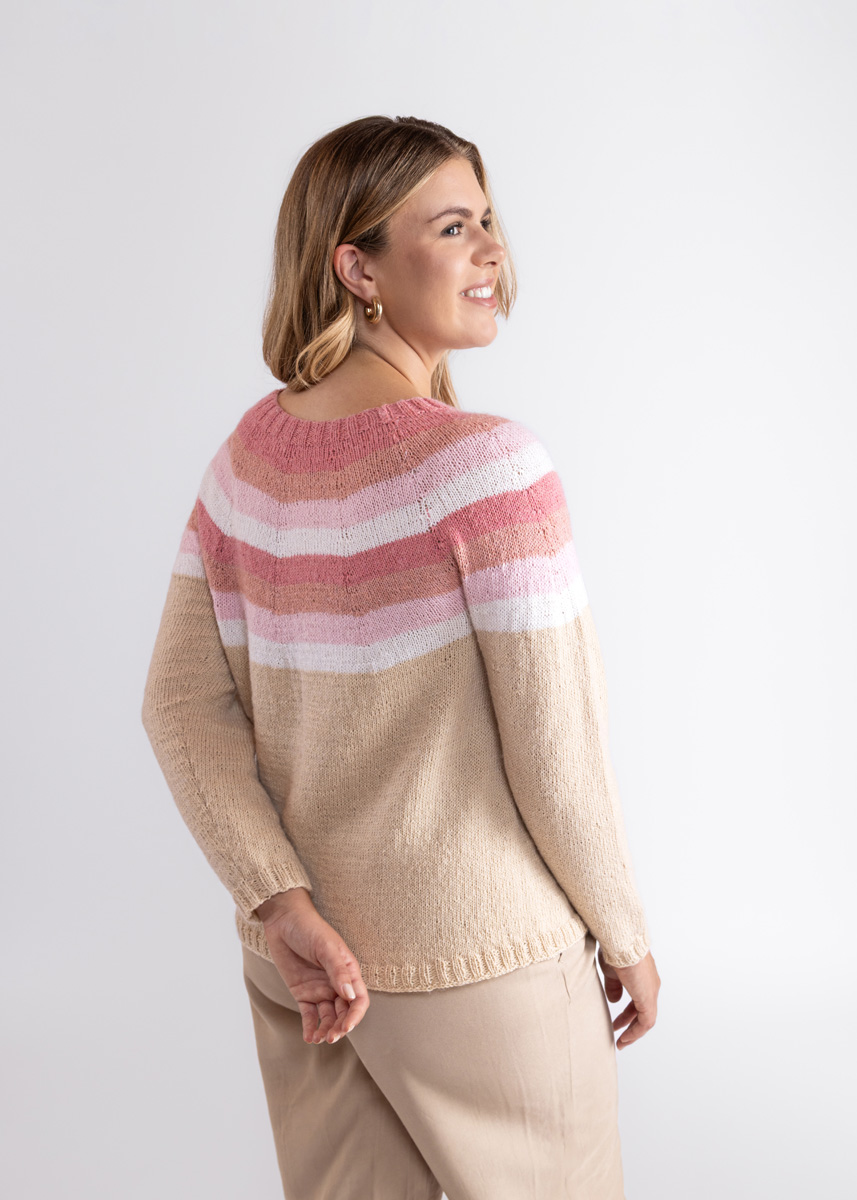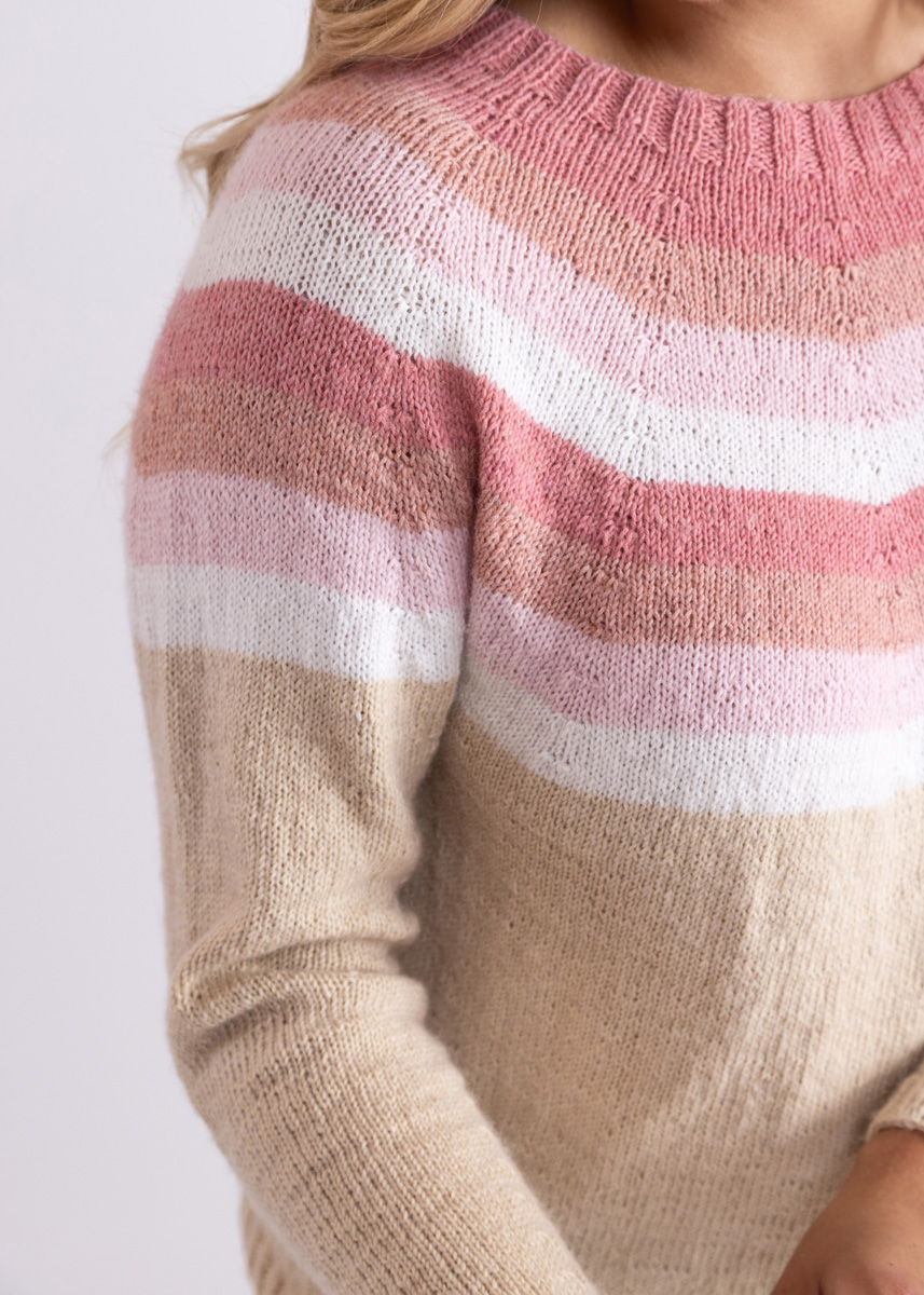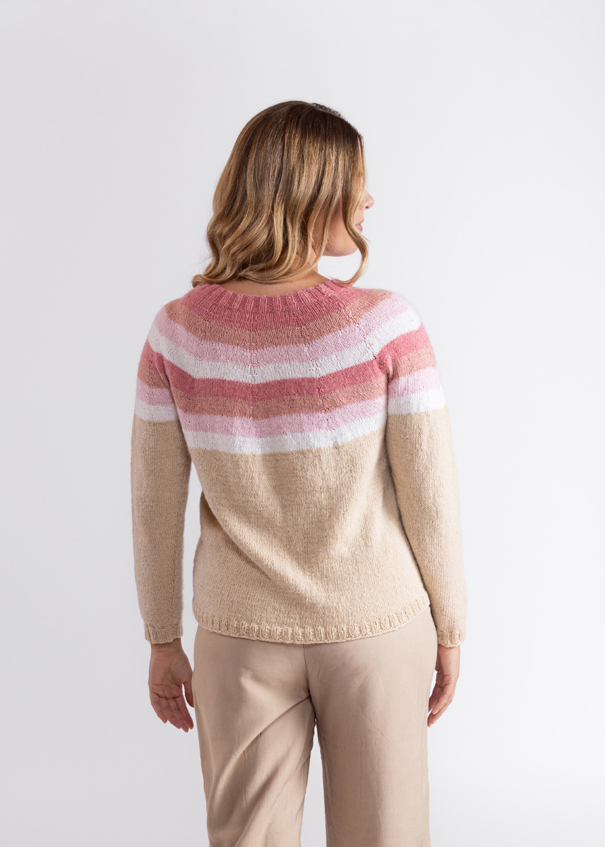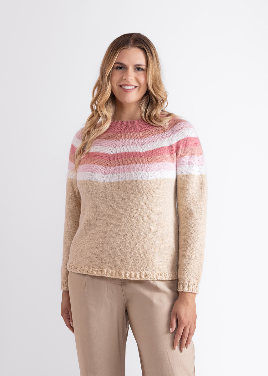 Der Pullover wird nahtlos in einem Stück von oben nach unten gestrickt.