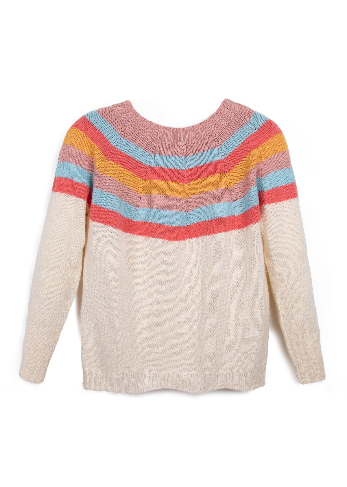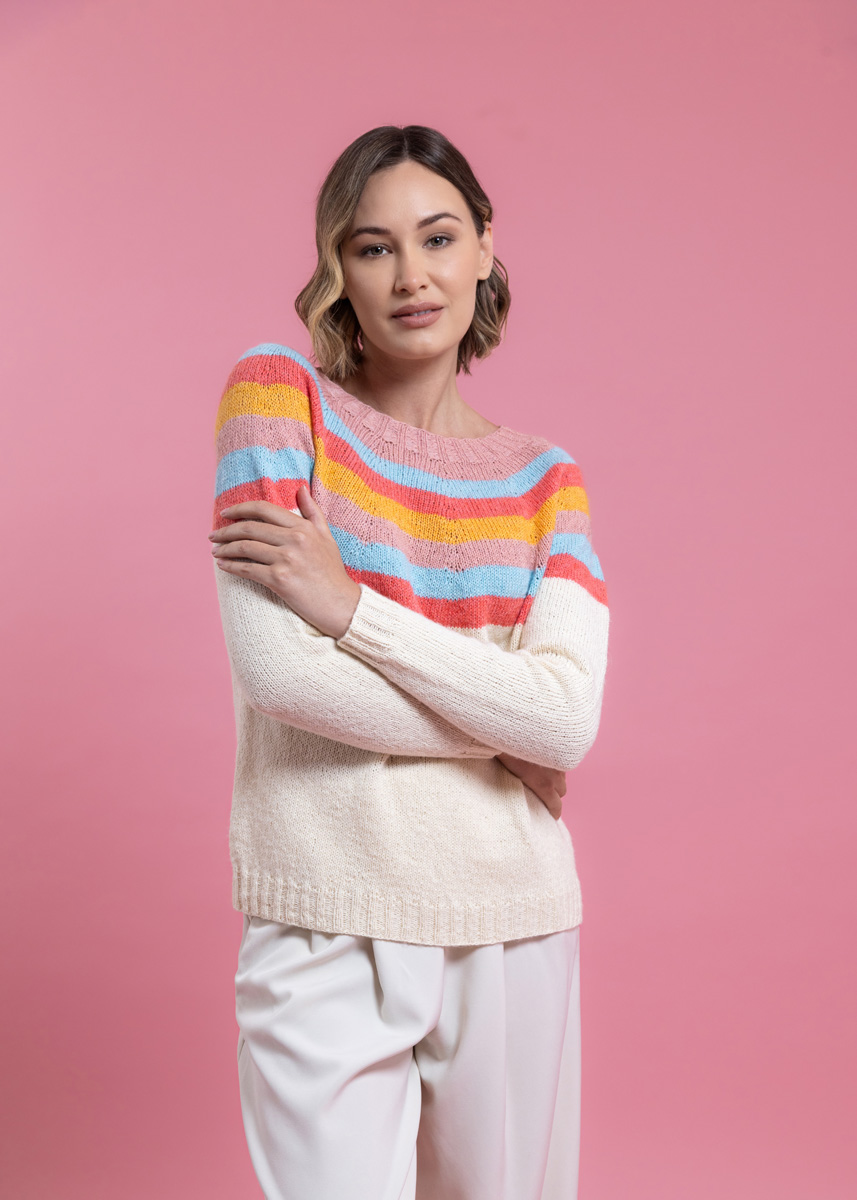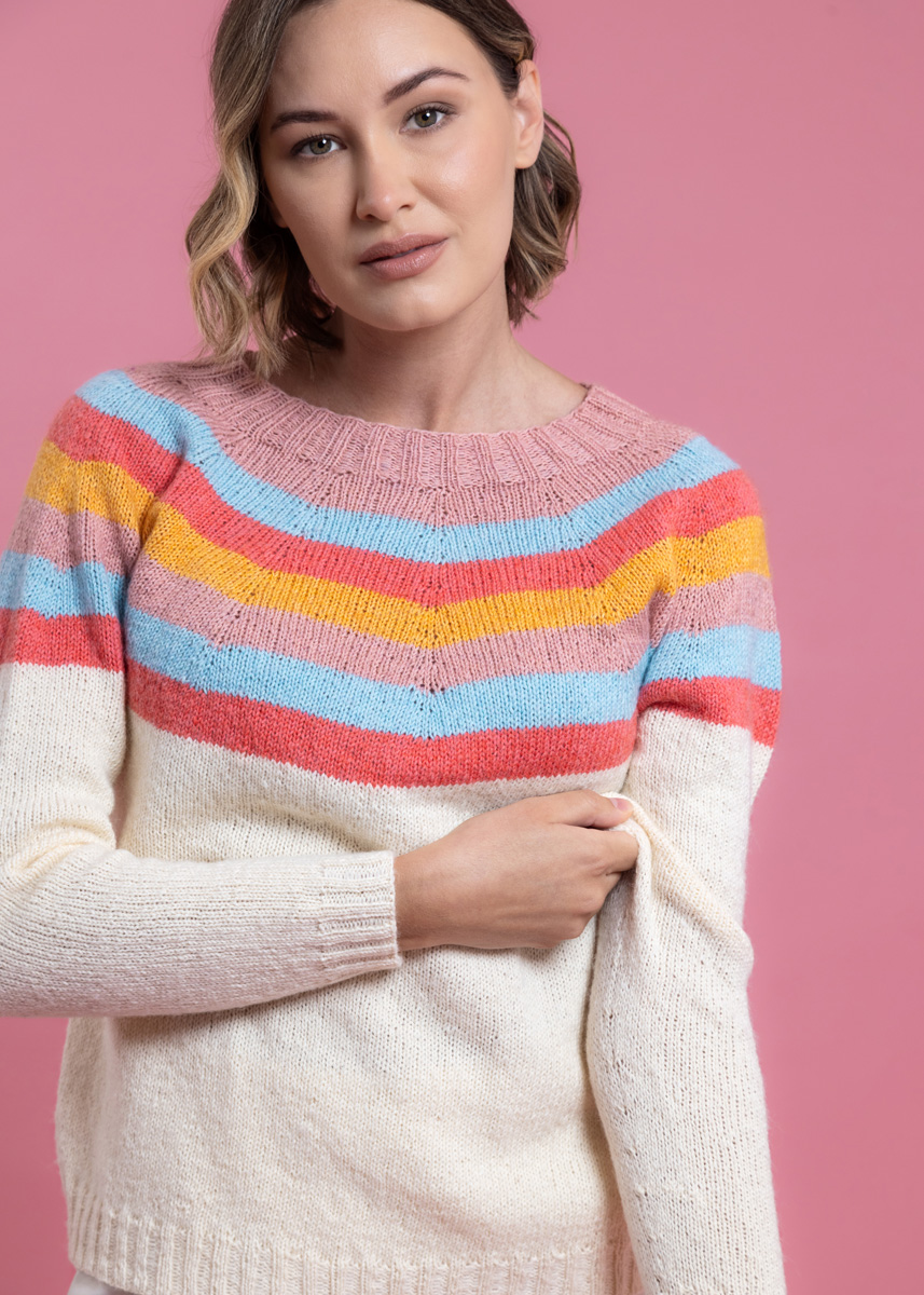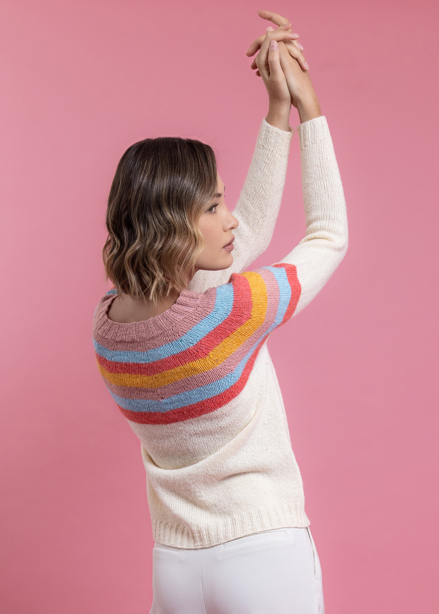 Der Pullover wird nahtlos in einem Stück von oben nach unten gestrickt.