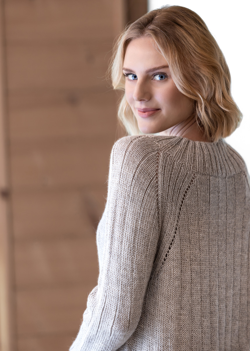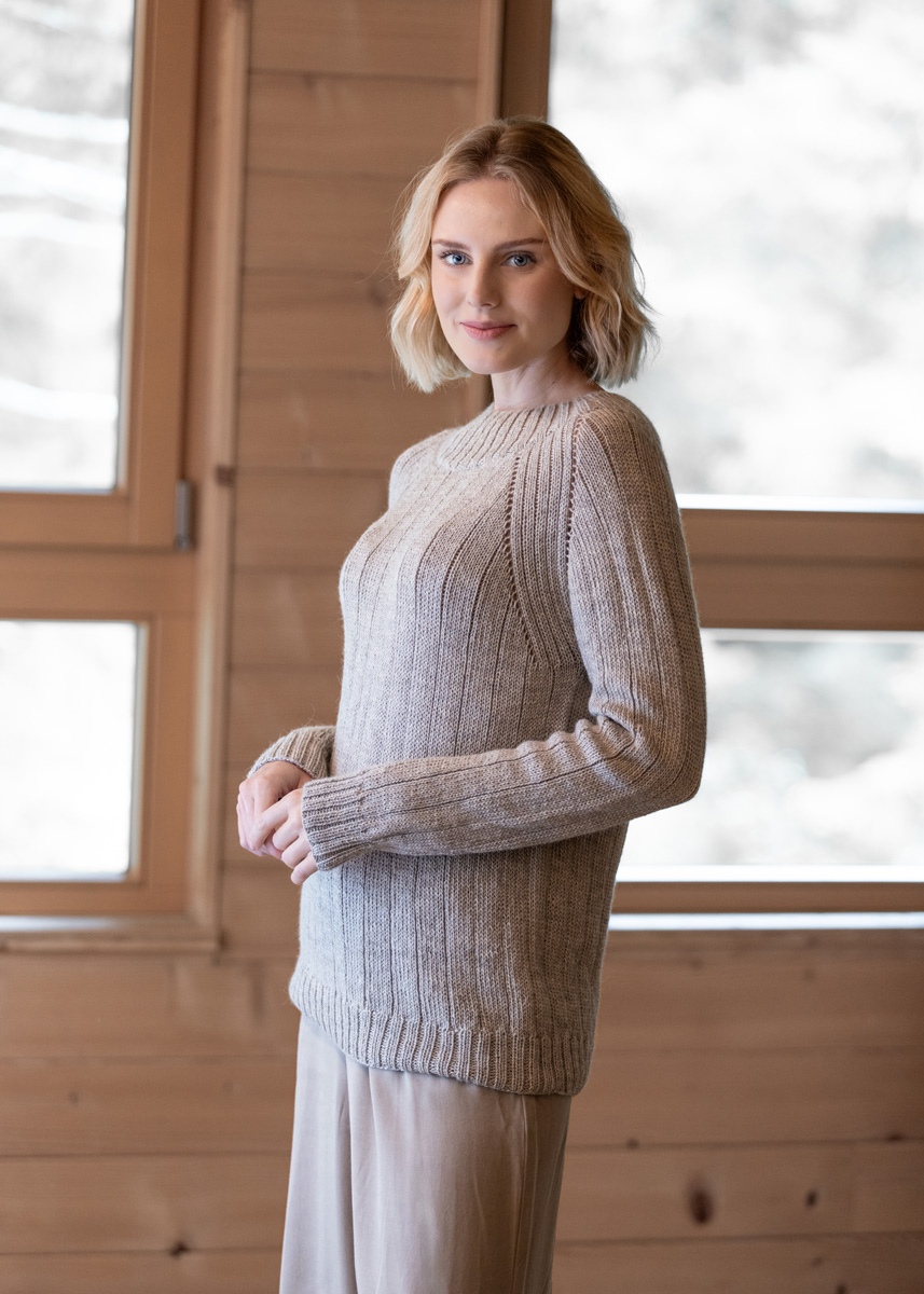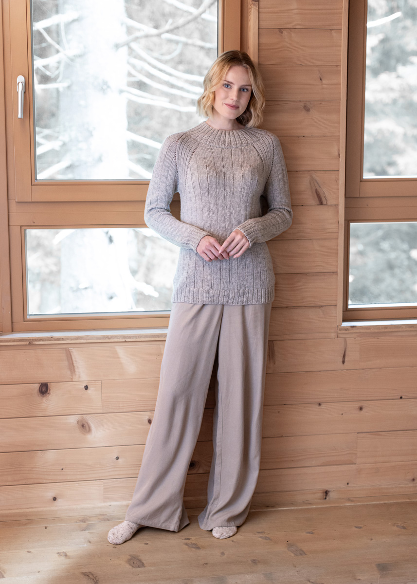 Der Pullover wird nahtlos in einem Stück von oben nach unten gestrickt. Er hat eine Gesamtlänge von 61 (63 - 65 - 67 - 69 - 71) cm und eine Brustmehrweite von 10 cm bei 80 cm Brustumfang (8 cm bei 88 cm Brustumfang - 8 cm bei 96 cm Brustumfang - 8 cm bei 104 cm Brustumfang - 8 cm bei 116 cm Brustumfang - 4 cm bei 128 cm Brustumfang).