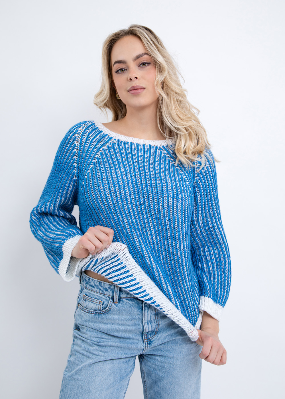Gestrickt aus dem hochwertigen Garn Summer Softness, begeistert Jana durch seine weiche Haptik und einen hohen Tragekomfort. Das zweifarbige Patentmuster sorgt für eine spannende Optik und macht den Pullover wendbar – je nach Styling kannst du die Farbseite ganz einfach wechseln.