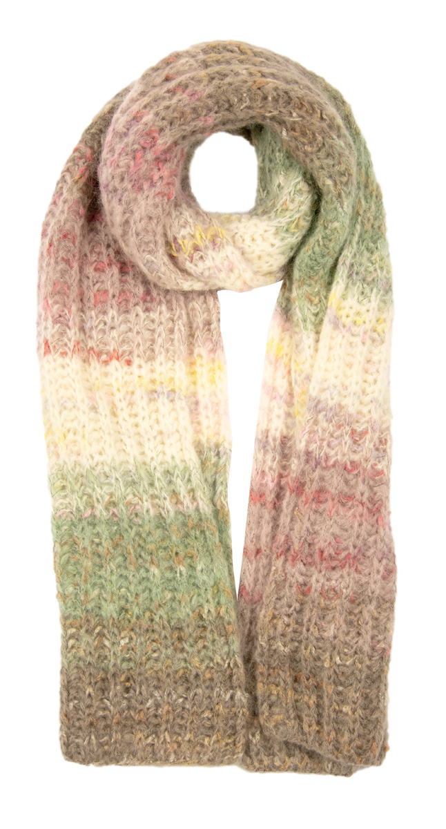 Lana Grossa Qualität „Lala Berlin Hazy“ (40% (Baby) Alpaca, 25% Schurwolle (Merino superfine), 25% Polyamid, 6% Tencel, 4% Baumwolle, LL= 250 m/50 g): 50 g Rosa/Erdbeer (Fb. 1), 50 g Zartgrün/Beige (Fb. 3), 50 g Beige/Karamell (Fb. 4), 50 g Rohweiß/Flieder/ Rosa (Fb. 9), Rundstricknadel Nr. 8.