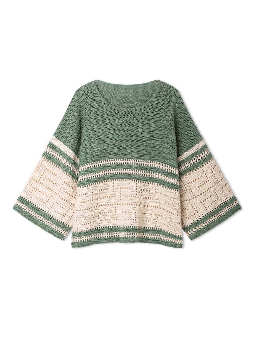 Weich, leicht und lässig – eine Kombi, die man nie wieder ausziehen will. Gehäkelt wird im Filetmuster, das sich hier grafisch kühl präsentiert – SUMMER CASHMERE.