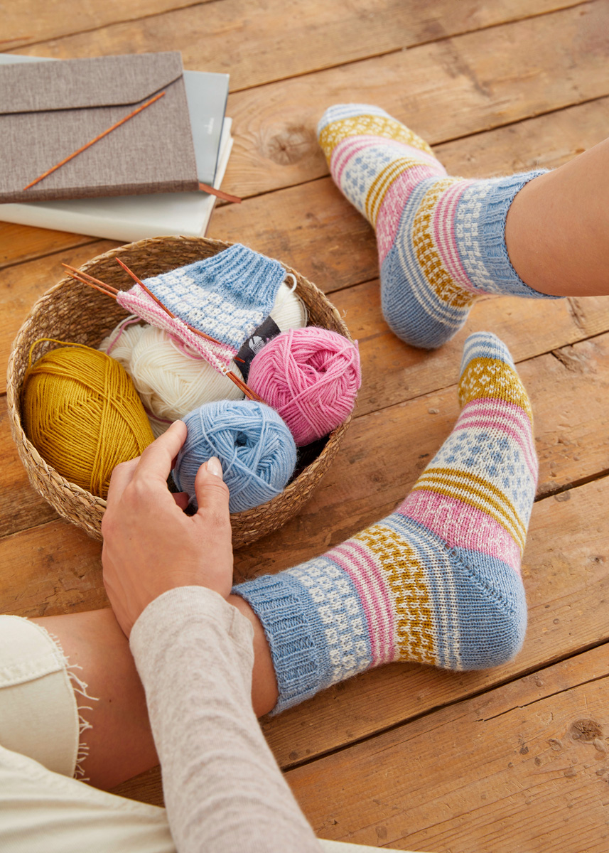 Neuauflage der Klassiker Besonders schillernde Socken in Juwelenfarben entstehen aus unserem Bestsellergarn Vintage Socks! Das hochwertige Sockengarn mit Merinowolle und dem dezenten Ton-in-Ton-Farbeffekt ist herrlich weich und bildet dennoch ein starkes, gleichmäßiges Maschenbild. Du kannst es ...