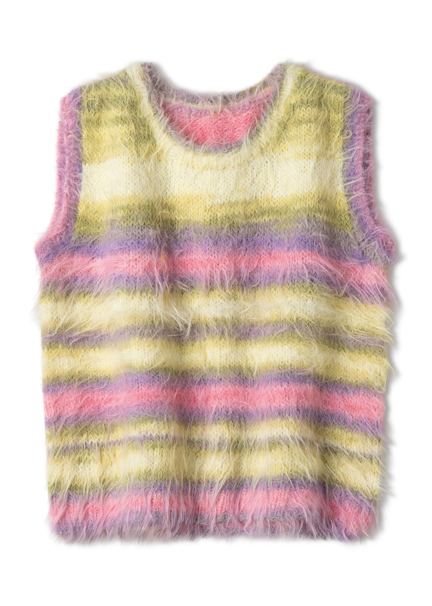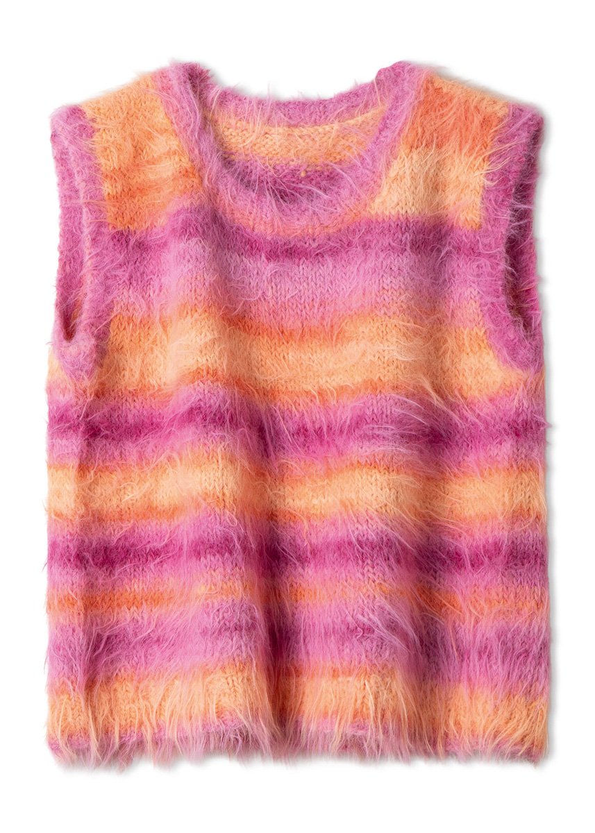 Lana Grossa-Qualität „Basta Mista“ (50% Schurwolle (Merino), 50% Polyamid, LL = ca 100 m/50 g): 250 (250 - 300 - 300) g Grüngrau/ Graublau/Hellpetrol/Grau-/Hellgrün (Fb 115) oder 250 (250 - 300 - 300) g Pfirsich/Apricot/Orange/Rosa/Pink/Fuchsia (Fb 111) oder 250 (250 - 300 - 300) g Creme/Vanille/Limette/Graugrün/Rosa/Flieder/Lavendel (Fb 112); Rundstricknadeln Nr 4 und Nr 6; 1 kurze Rundstricknadel Nr 4.