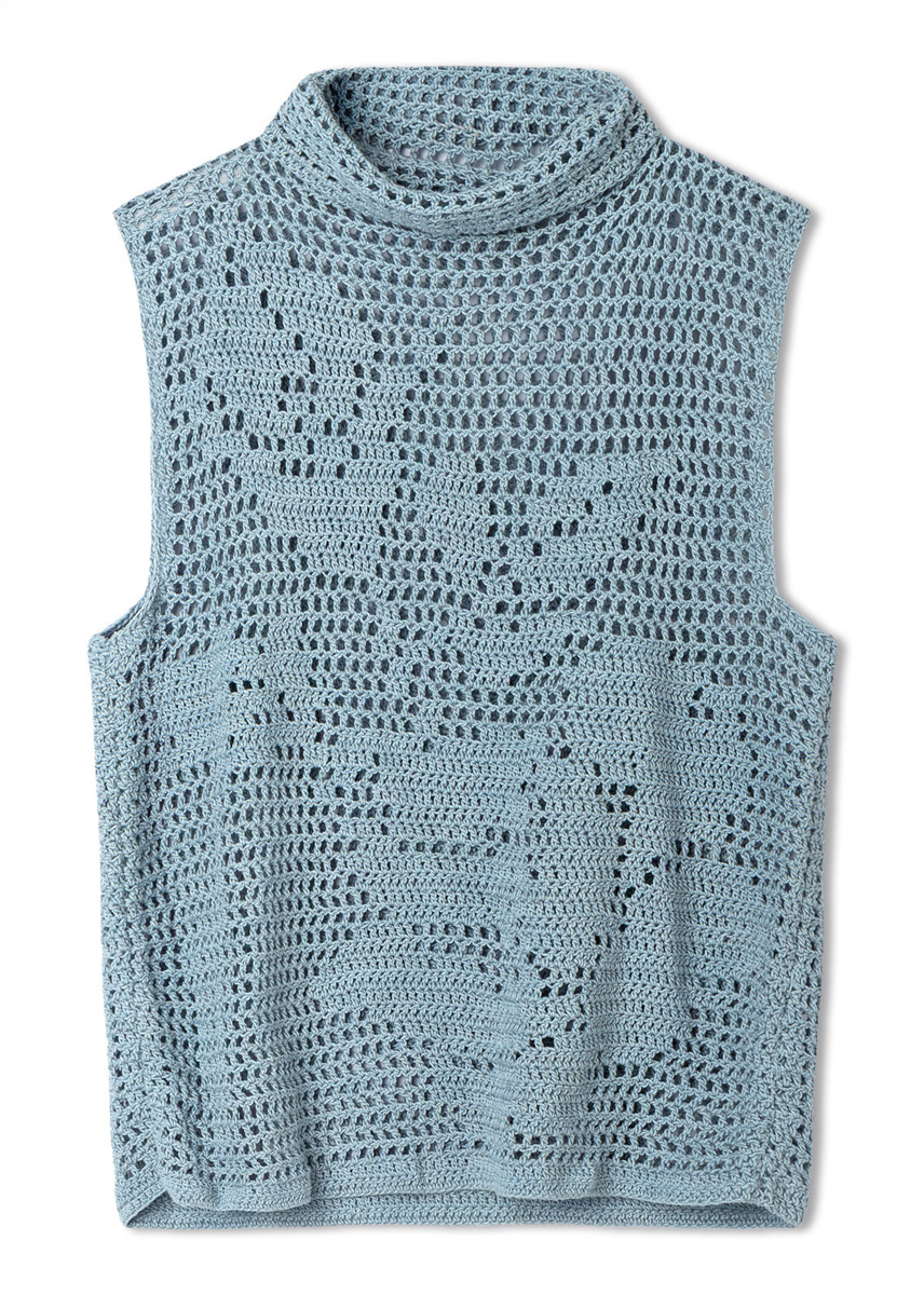 Lana Grossa-Qualität „Solo Lino” (80 % rec. Leinen (Viskose), 20 % Leinen, LL = ca. 120 m/50 g): ca. 350 (400) g Hellblau (Fb. 46); 1 Wollhäkelnadel Nr. 3,5.