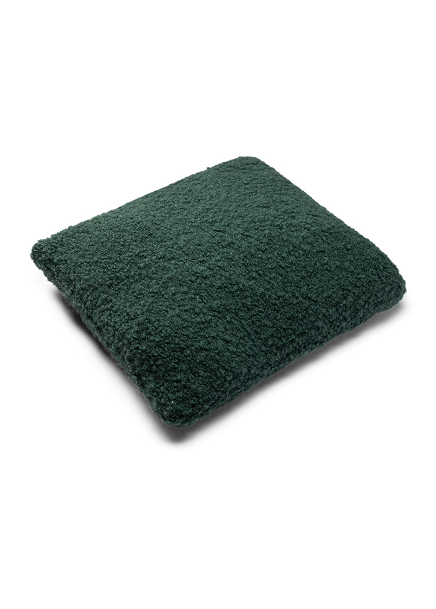 Lana Grossa-Qualität „Orsetto” (60 % Schurwolle (Merino), 40 % Alpaka (superfine), LL = ca. 75 m/50 g): je ca. 200 g Grège (Fb. 7) und Petrolgrün (Fb. 9); Stricknadeln Nr. 6; 2 waschbare Kissenfüllungen, 50 x 50 cm.