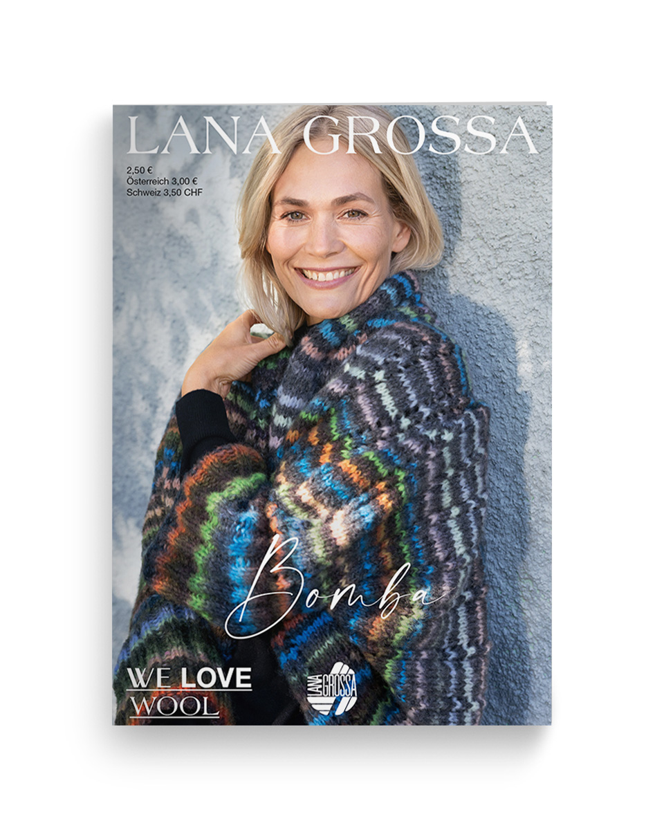 Die Bomba ist der flauschige Gegenentwurf zur Farfalla – unserem bunten Kettgarn aus watteweichen Merinofasern, von dem Sie zu Saisonanfang bestimmt schon viel gehört haben. Wer es also genauso kuschelweich, jedoch voluminöser haben möchte, ist bei unserem Print-Garn Bomba an der richtigen Adresse. Dieses Schätzchen ist in zehn Farben erhältlich. Es besteht zu 85 % aus Schurwolle (Merino extrafein), und hat eine Lauflänge von 290m/100g. Gestrickt wird sie mit Nadelstärke: 5-6. Also worauf warten? Sicher dir sogleich unseren neuen Flyer mit insgesamt neun kostenlosen Anleitungen, damit du auch sofort loslegen können.