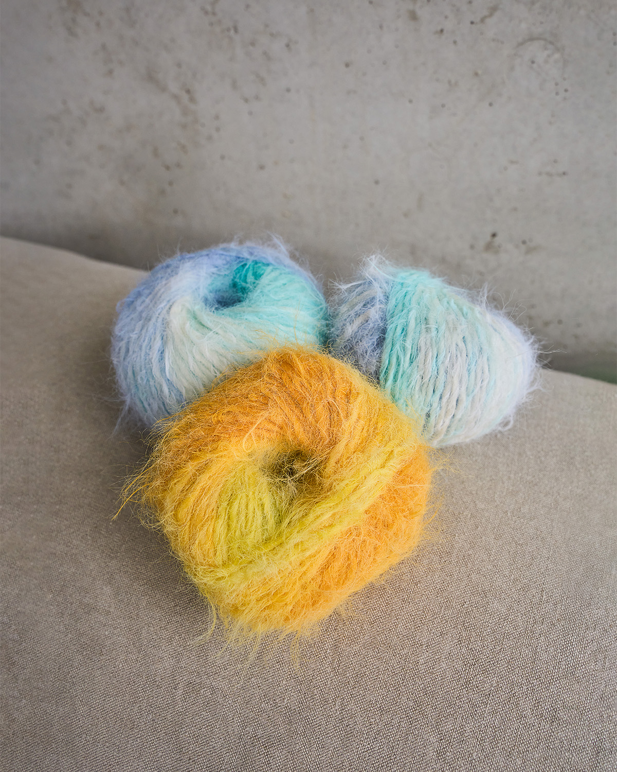 70 % Mohair, 20 % Schurwolle Merino, 10 % Polyamid