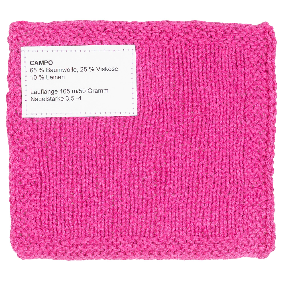 Campo ist ein modernes, leichtes Sommergarn mit natürlicher Ausstrahlung und angenehm weichem Griff. Die hochwertige Mischung aus Baumwolle, Leinen und Viskose sorgt für eine lebendige Struktur, einen trockenen, kühlen Touch und ein schönes, leicht mattes Maschenbild – ideal für luftige Sommerteile mit natürlichem Charme.