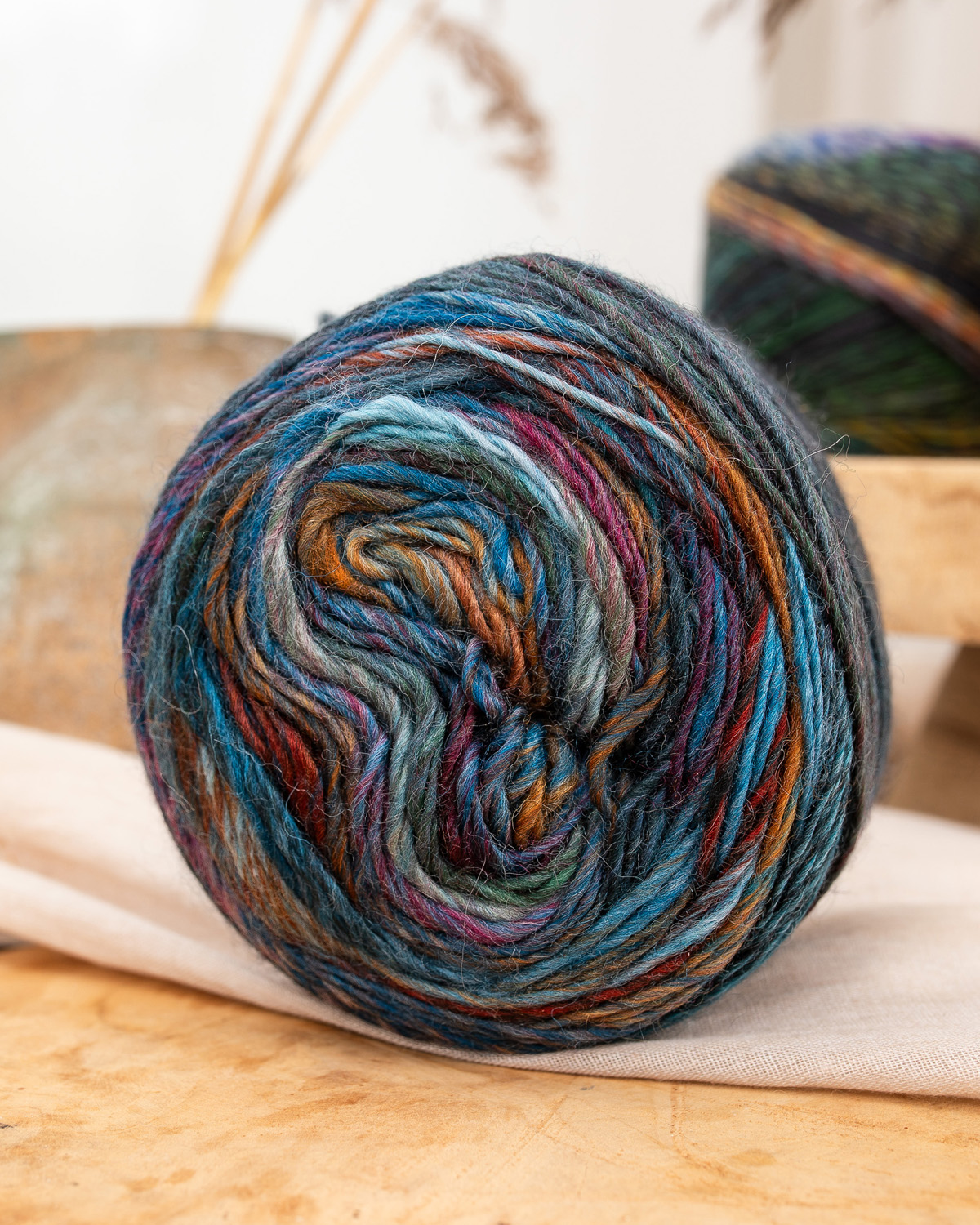 Durch den langen Farbverlauf entstehen beim Stricken sanfte Übergänge und lebendige Muster – ganz ohne Aufwand.