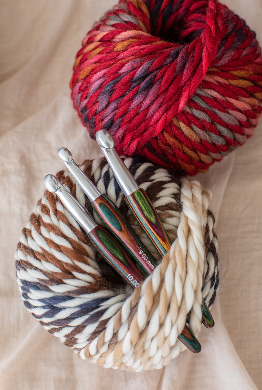Perfekt für Chunky-Knits: Unser daumendickes Dochtgarn, das breite Streifen und Mouliné-Effekte kreiert.