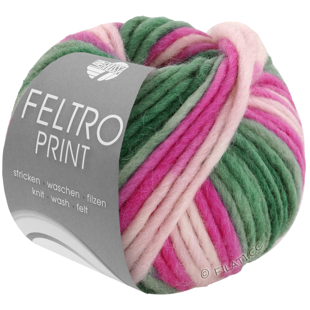 Feltro Print ist das farbenfrohe Filzgarn von Lana Grossa mit abwechslungsreichen Farbverläufen – perfekt für kreative Filzprojekte mit dem gewissen Etwas. Wie die klassische Feltro-Qualität besteht es aus 100 % Schurwolle und lässt sich unkompliziert verarbeiten und in der Waschmaschine verfilzen.