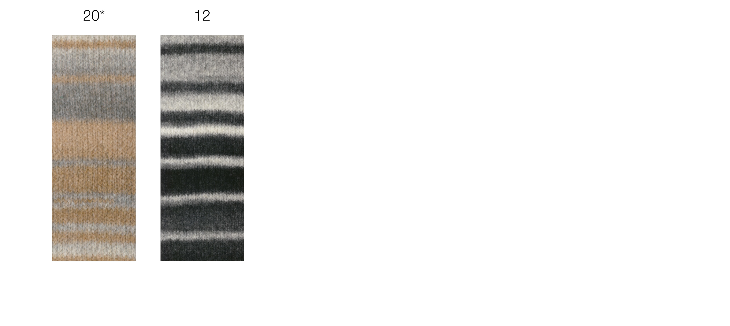 Voluminöses Alpakagarn mit Effektstruktur und Streifen im Farbverlauf.