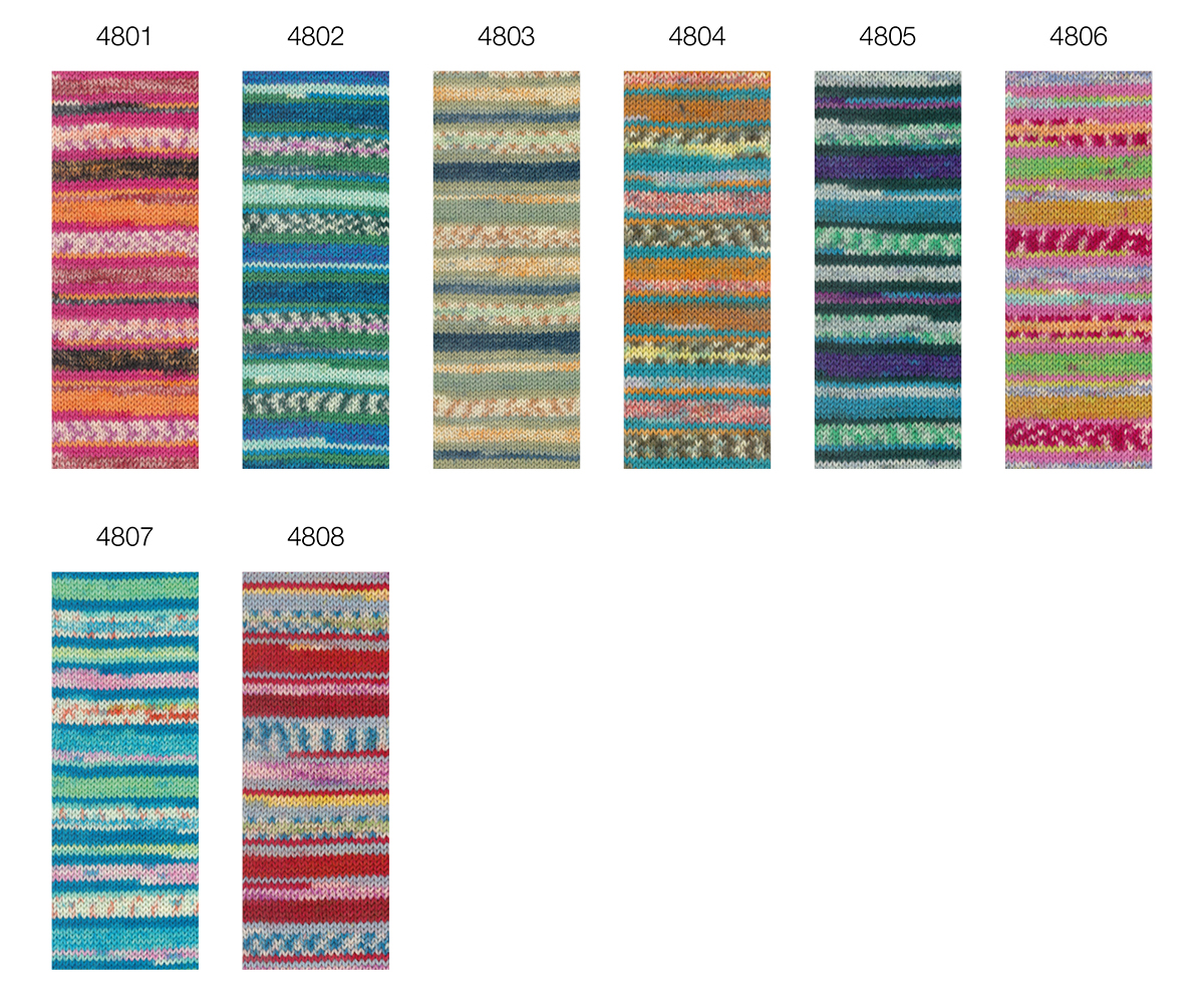 Lana Grossa Meilenweit 100 Piccata vereint klassische Qualität mit modischen Farbverläufen. Das 4-fädige Sockengarn aus Schurwolle und Polyamid ist strapazierfähig, pflegeleicht und angenehm zu tragen.