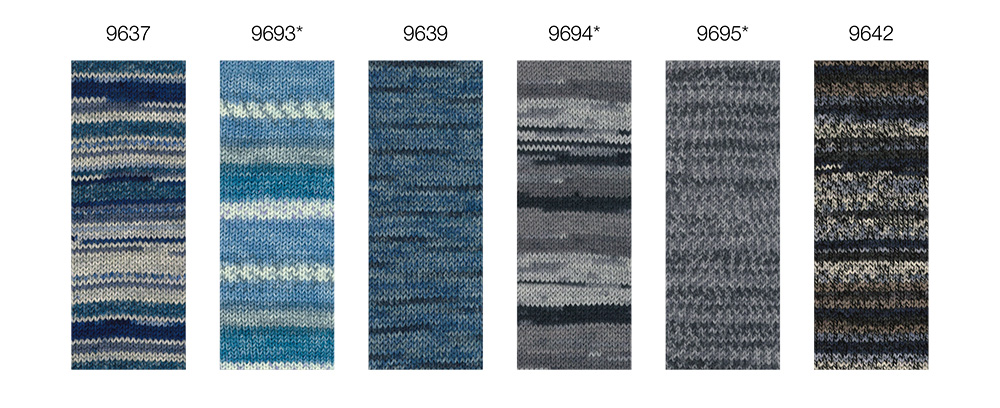 Lana Grossa Meilenweit 6-fach 150g Denim Mix kombiniert trendige Denim-Farben mit kuscheliger Garnqualität. Das 6-fädige Sockengarn aus Schurwolle und Polyamid ist besonders warm - deal für robuste Socken.