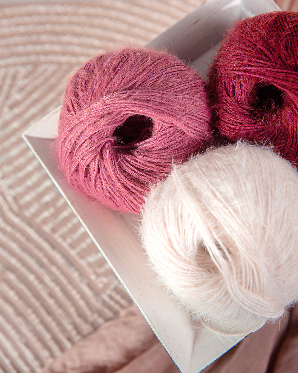 55 % Mohair, 45 % Schurwolle Merino