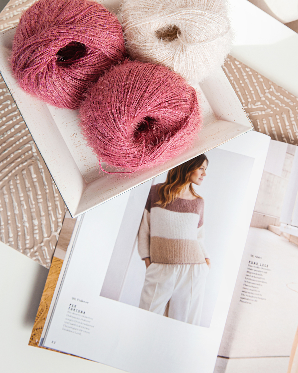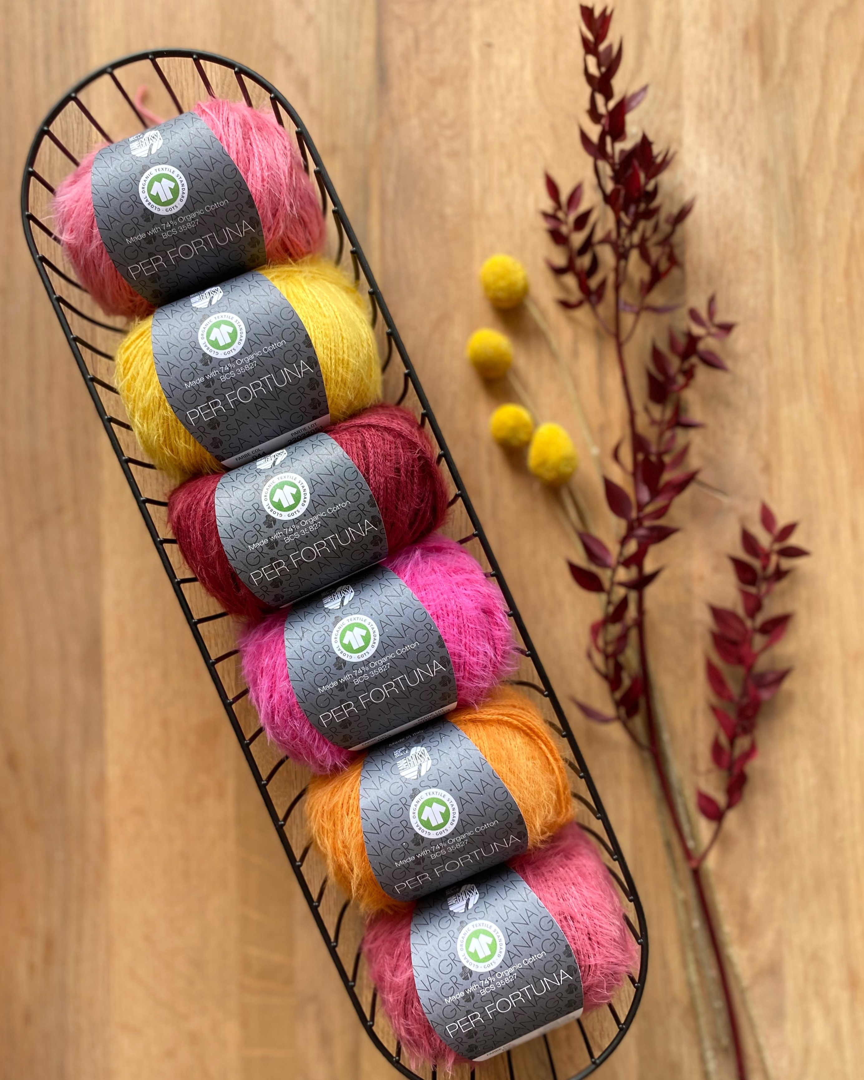 Per Fortuna ist ein nachhaltiges Kettengarn mit kuscheligem Flausch und besonders weichem Griff. Es wird aus Bio-Baumwolle und recyceltem Polyamid hergestellt und ist GOTS-zertifiziert – ideal für alle, die umweltbewusst stricken möchten, ohne auf Komfort zu verzichten.