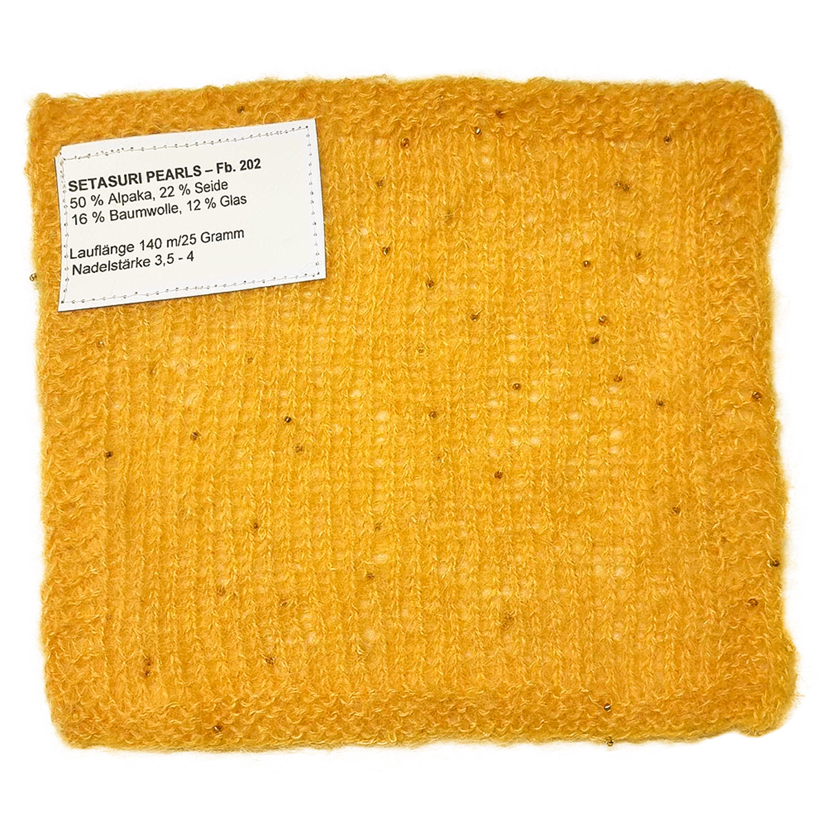 Setasuri Pearls von Lana Grossa verbindet edle Materialien mit einem Hauch Glamour. Die feine Mischung aus Suri-Alpaka und Seide sorgt für eine besonders leichte, flauschige Struktur mit elegantem, natürlichem Glanz. Kleine, eingearbeitete Perlen setzen dabei dezente, funkelnde Akzente und verleihen jedem Strickstück eine außergewöhnliche Ausstrahlung.
