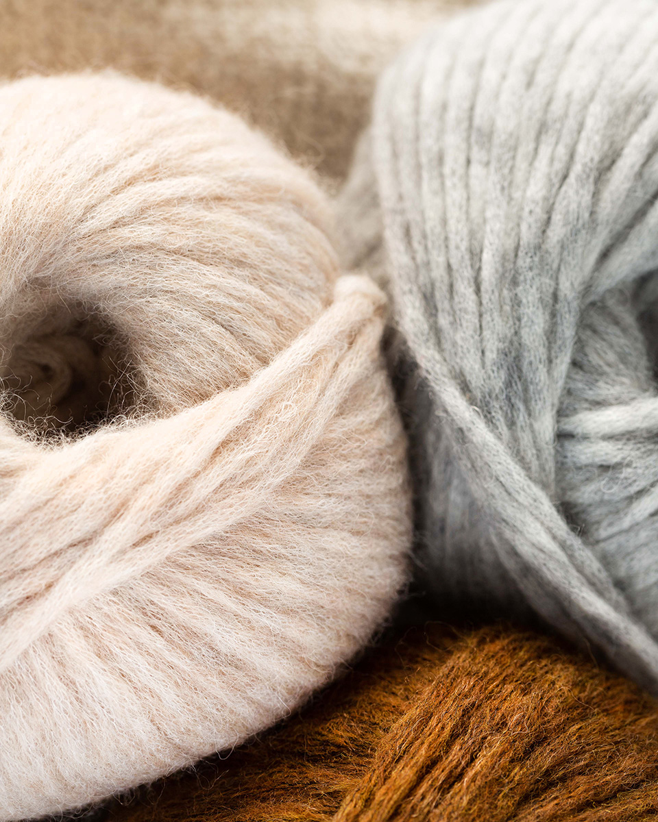 50 % Baumwolle, 16 % Alpaka, 10 % Schurwolle Merino, 24 % Viskose