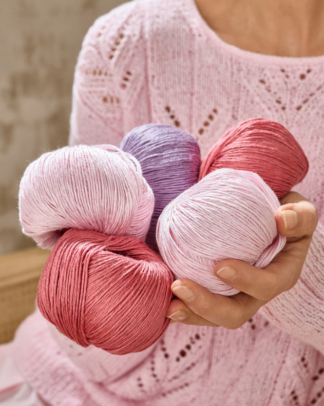 Kühlendes Leinen trifft auf weiches Tencel. Gemeinsam verbinden sie sich zu einem perfekten, wunderschönen Sommergarn mit zwischen matt und seidig changierender Optik.